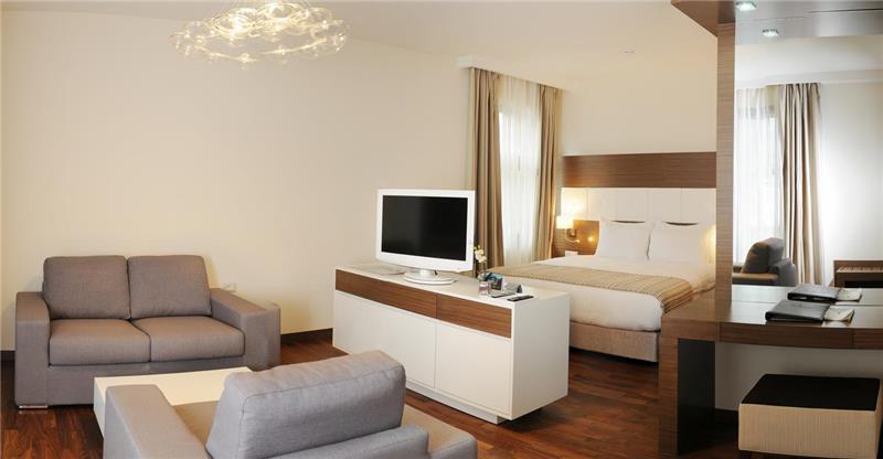 Elegantly decorated rooms and suites are fitted with an LCD cable TV, a balcony and comfortable seating area. Some suites come with an on-site sauna and Swarovski chandeliers. The spacious bathroom comprises toiletries, bathrobe and slippers.
