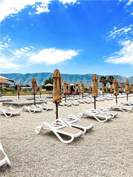 Regina Palm Resort 5* is a perfect place for your unforgettable vacation on the Albanian Riviera. It is set at the Ionic coast, in 2 km from Orikum and 18 k from the center of Vlora. The hotel has 150 comfortable elegant rooms in total, a large outdoor swimming pool (about 120 m²), a privat pebble beach (50 meters from the hotel), complimentary umbrellas & sunbeds, restaurants and bars, 24-hour reception, private parking and free Wi-Fi.