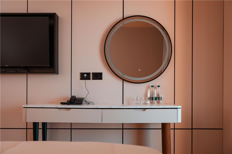 In the modern stylish hotel's rooms you will find everything for your comfortable and relaxing stay: air conditioning, flat screen TV-set, a minibar, a safe box, a desk, a wardrobe, a private bathroom with shower cabin, bide, hair dryer, towels and free toiletries. The rooms have sea view or mountain view. Most of them are with balconies.