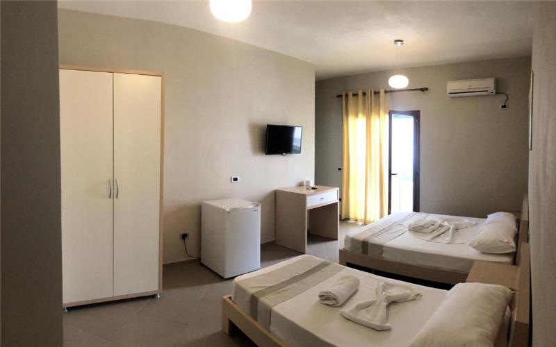 The hotel has 28 standard rooms for 2-3 people with renovated bathrooms, balconies and garden view. Every room is equipped with an air conditioner, a flat screen TV, a mini fridge and safe box. There are a desk and a wardrobe. In the bathrooms there are a shower, towels, hair dryer and free toiletries.