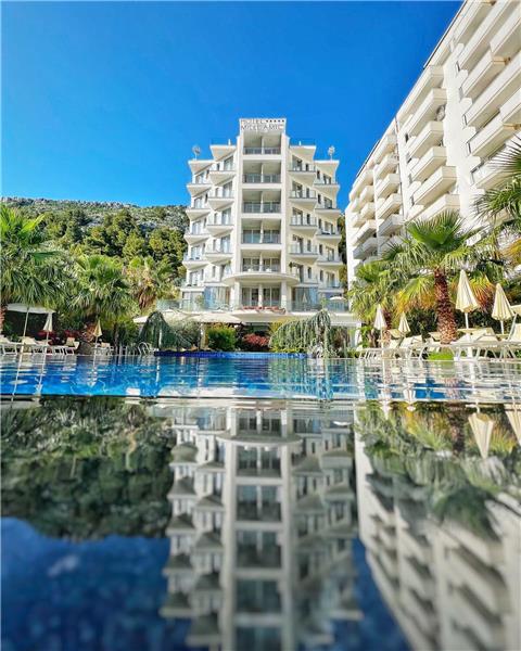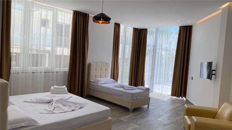 Mille Amici Hotel 4* is located just 250 m from Shengjin Beach and offers a comfortable accommodation for couples and families with a lounge bar, a la carte restaurant, an outdoor swimming pool and a garden, free parking and Wi-Fi. Continental breakfast buffet is included in the price.