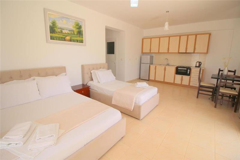 Afrimi Relax Apartments, a beachfront property located in the beautiful city of Saranda, is a nice place for budget family summer vacation on the Ionian Sea.