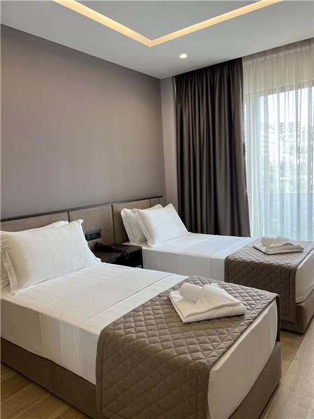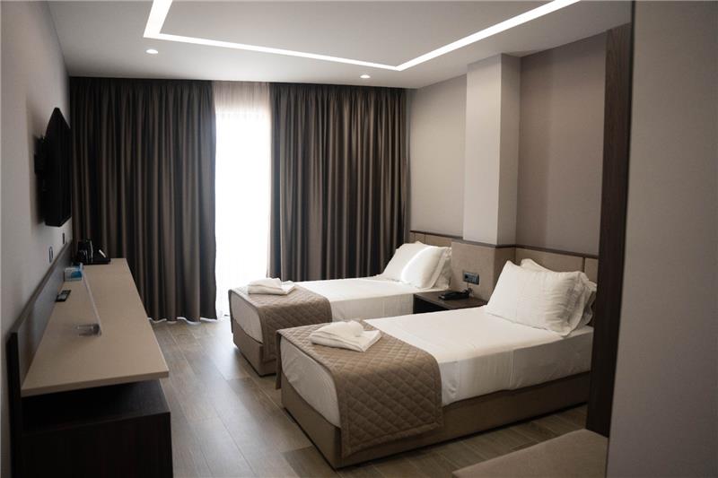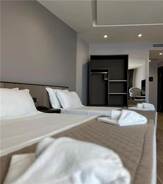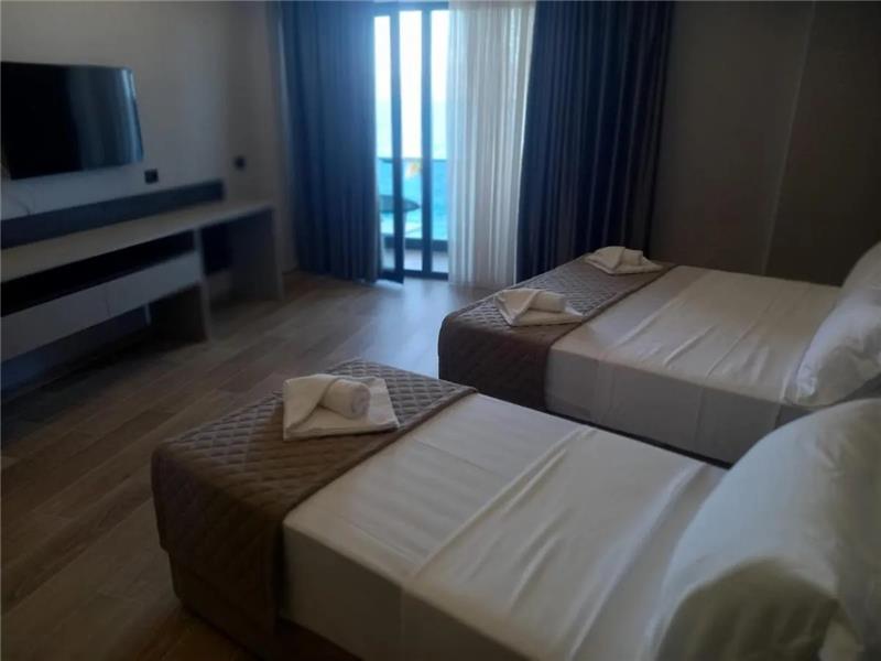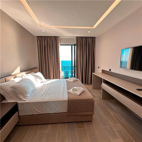 At the hotel all rooms are equipped with air conditioning, a flat-screen TV with cable channels, a kettle, a telephone to connect with reception, a tea maker, a safe box, a desk and a wardrobe, a private bathroom with shower cabin, hair dryer, free toiletries and towels. Baby cot can be provided under request. All rooms have balconies and 90% of them have sea side orientation. 10% of rooms have back view.