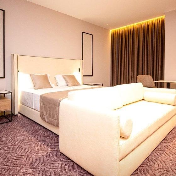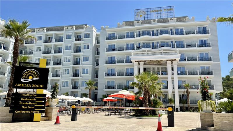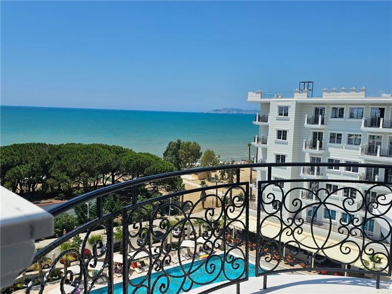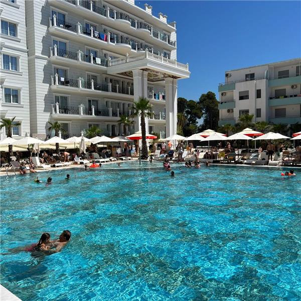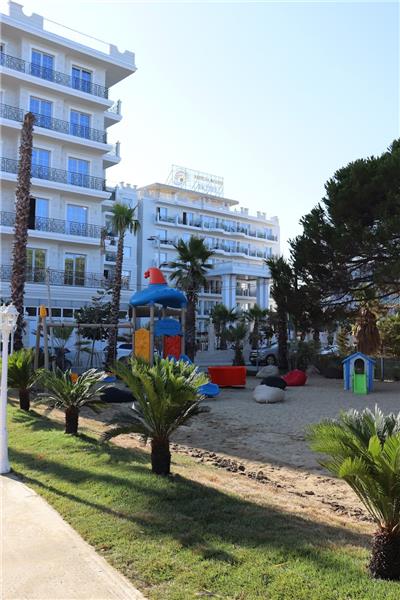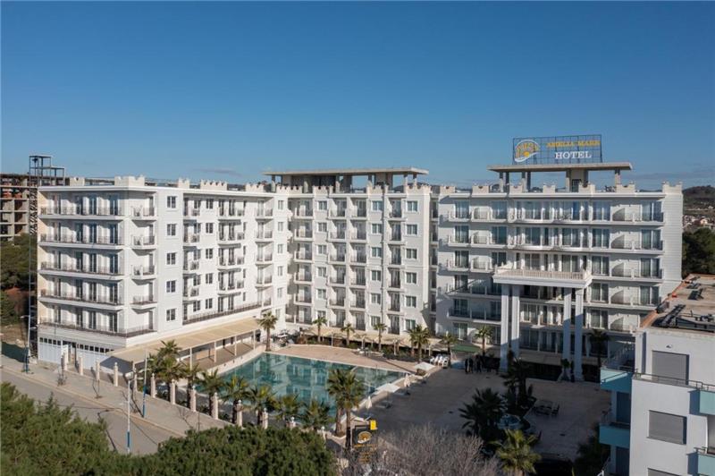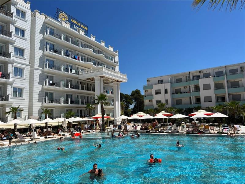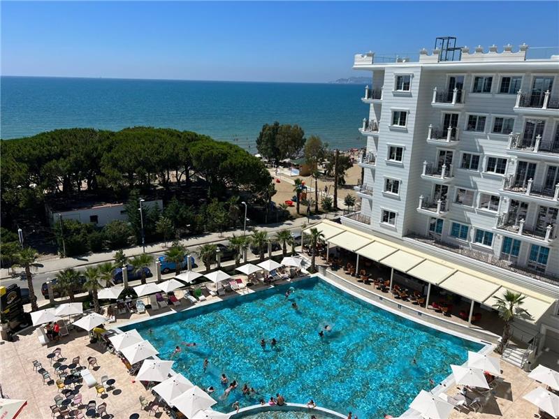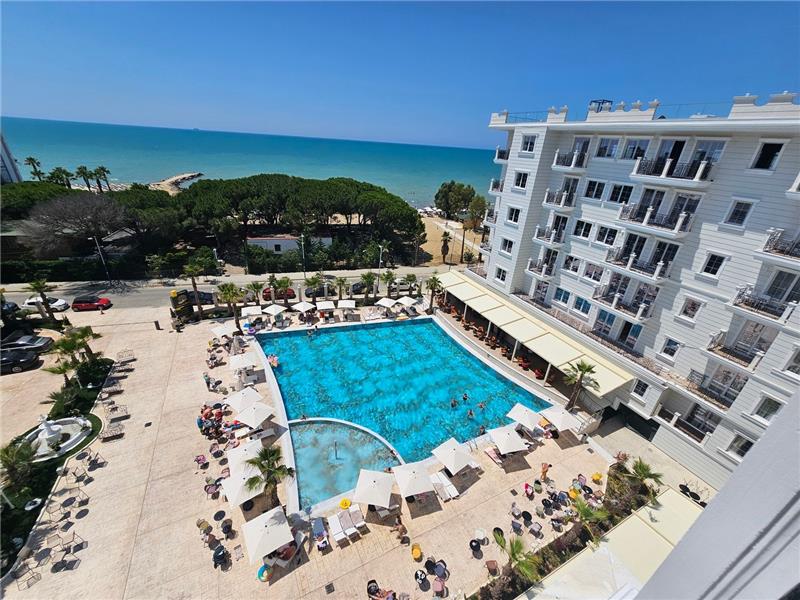 New elegant modern all-inclusive hotel Amelia Mare 5* with outdoor swimming pool located in Durres, Golem, just 30 m away from its own private beach area (across the road).