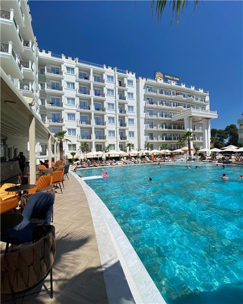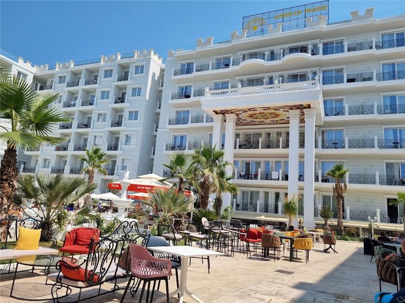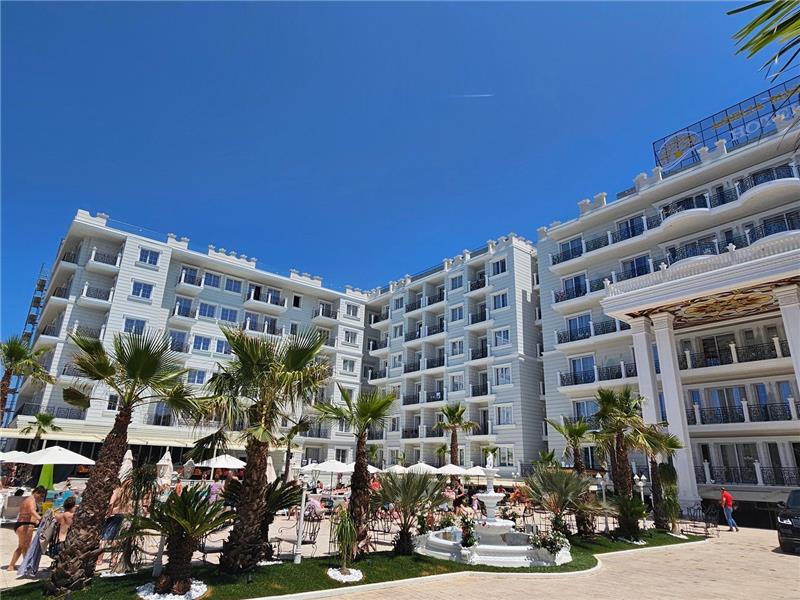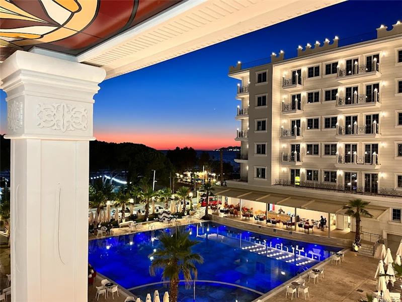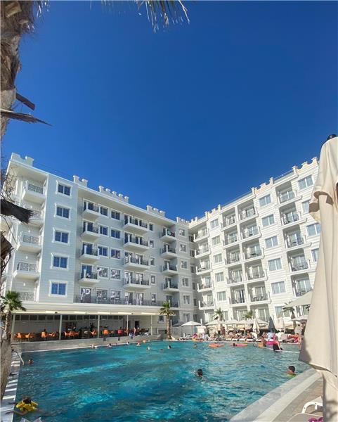 The hotel opened its doors in June, 2023. Its building has 7 floors, 3 elevators, spacious and elegant lobby, 24h front desk, all inclusive restaurant, pool and beach bars and 185 comfortable rooms for couples and families.