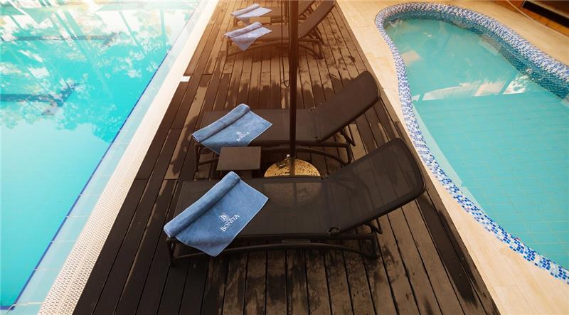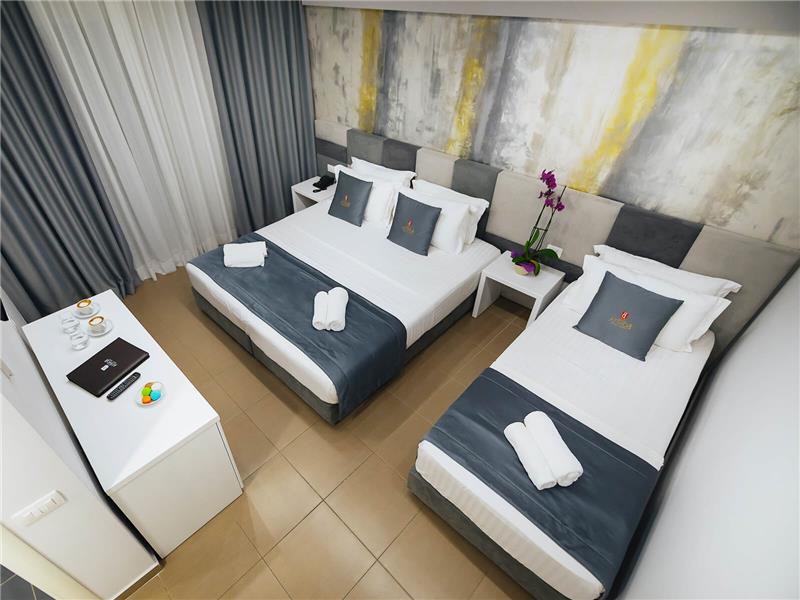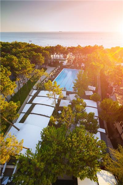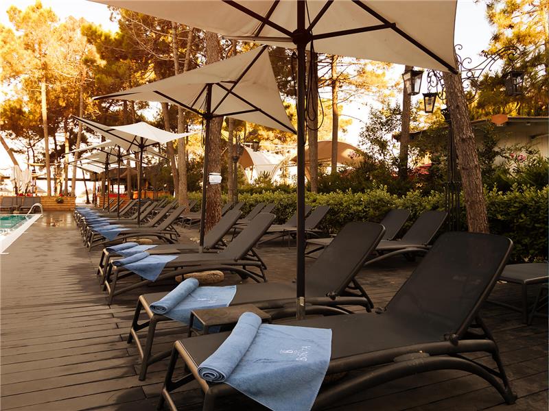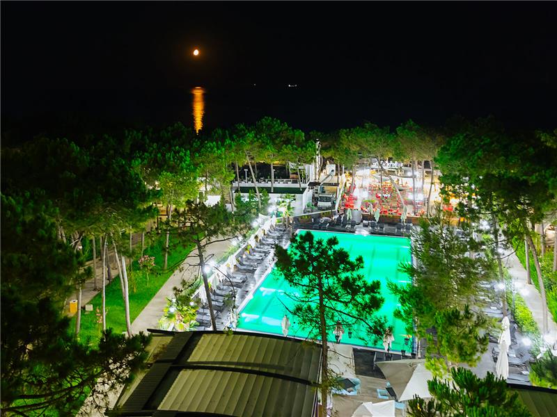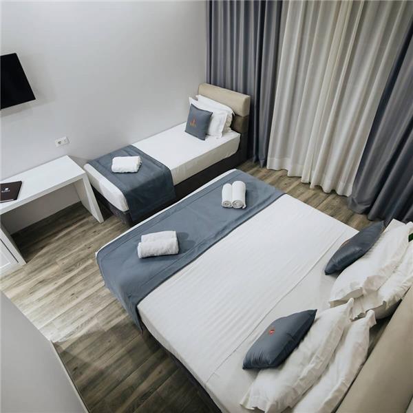 You will find here new comfortable room conditions, 24-hours front desk, a nice beach with free umbrellas and sunbeds, a large outdoor swimming pool (200 m²) surrounded by pine trees, a bar, a International cuisine restaurant , free private parking and free Wi-Fi, available in the rooms and in any other public area of the hotel. The hotel has own and SPA center with indoor pools, sauna, Jacuzzi, massage rooms and fitness center (spa services are provided with extra payment). There is conference hall for business events. Every weekend, music evenings with the participation of Albanian singers and bands are organized i the hotel.