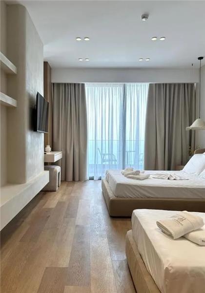 This 4-star hotel offers accommodation in luxurious room of 4 types for couples or families with a la carte Mediterranean restaurant, a seaside beach bar, free umbrellas and sunbeds for guests at the private beach zone, free private parking and free Wi-Fi.