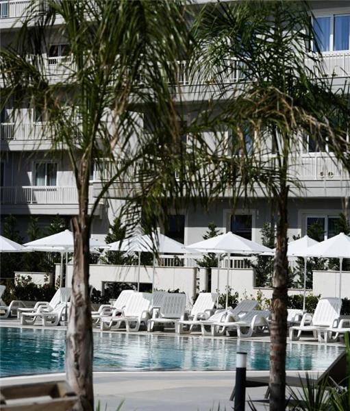 - Sunchairs and parasols at the pool