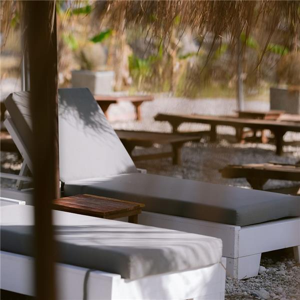 - Sunchairs and parasols at the beach