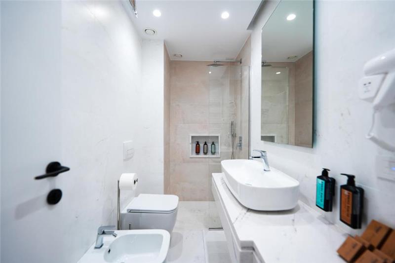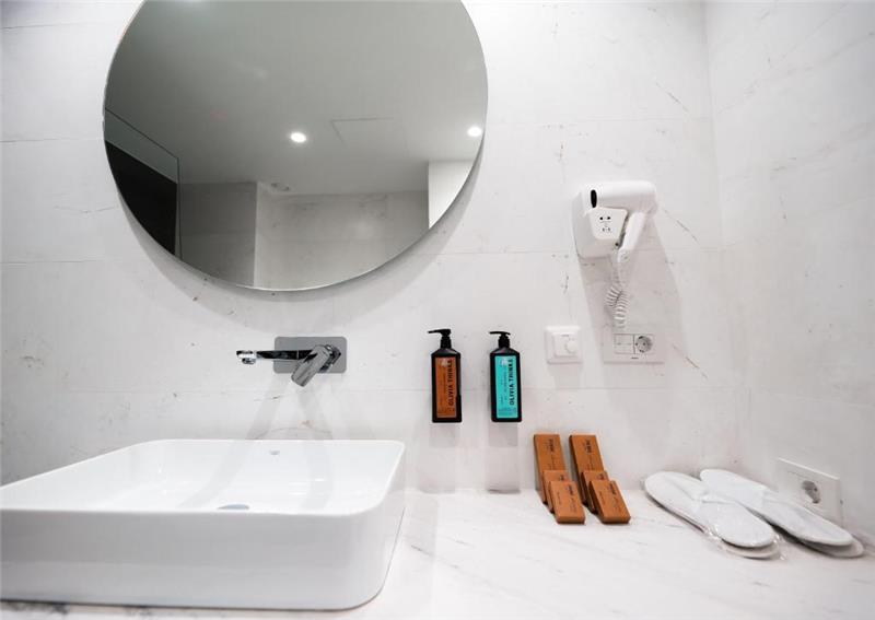Each hotel room is equipped with air-conditioning, a flat-screen TV, a mini fridge, a safety deposit box, a telephone to connect with reception, an electric kettle etc. In private bathrooms there are shower, bide, hairdryer, towels, bath slippers and free toiletries. In Suites there are spa bath.