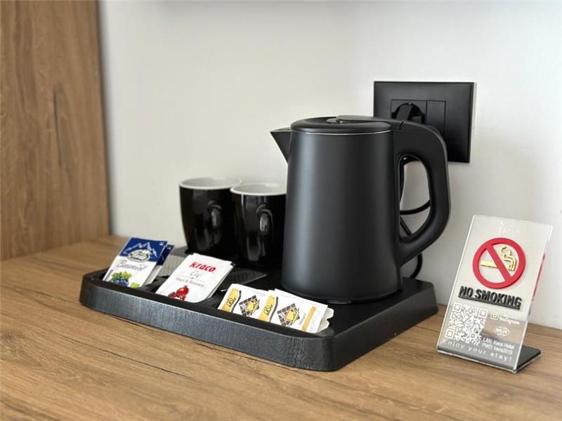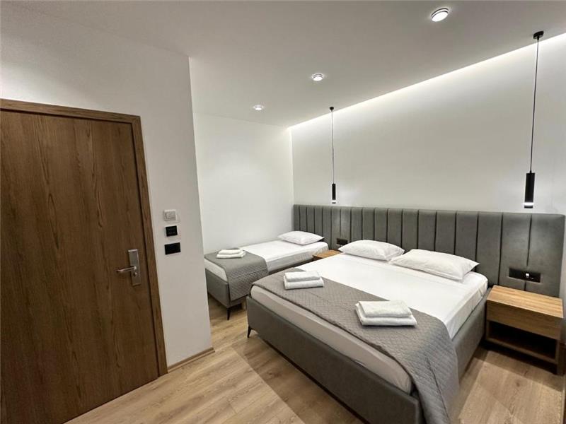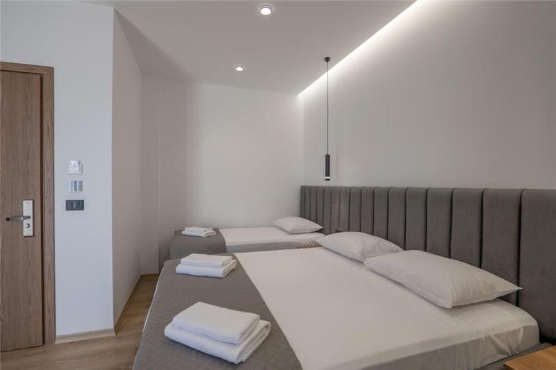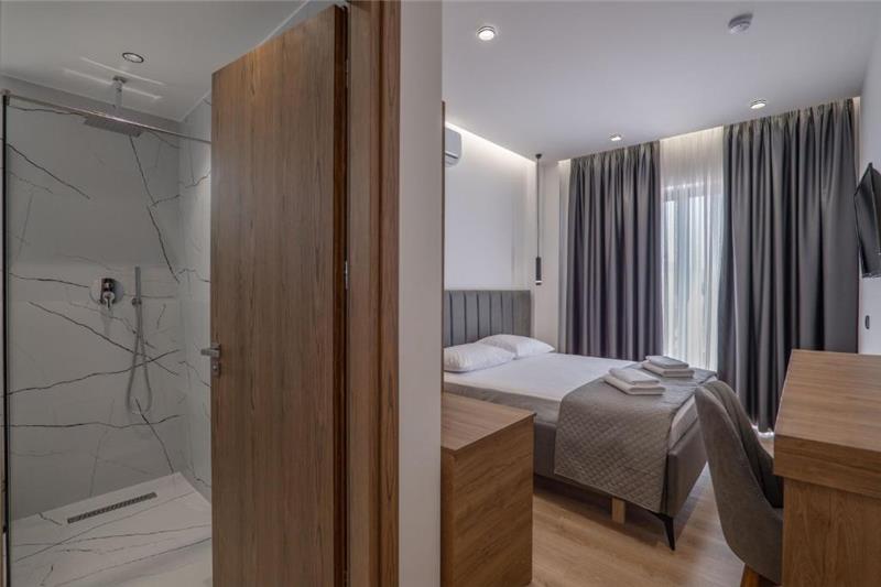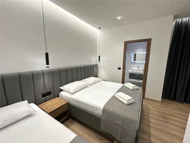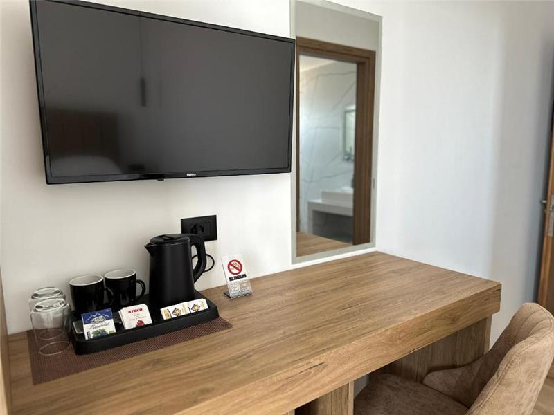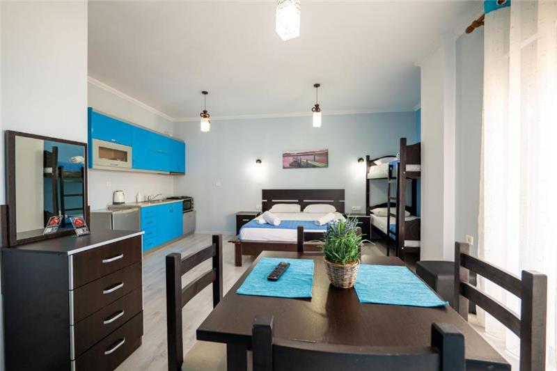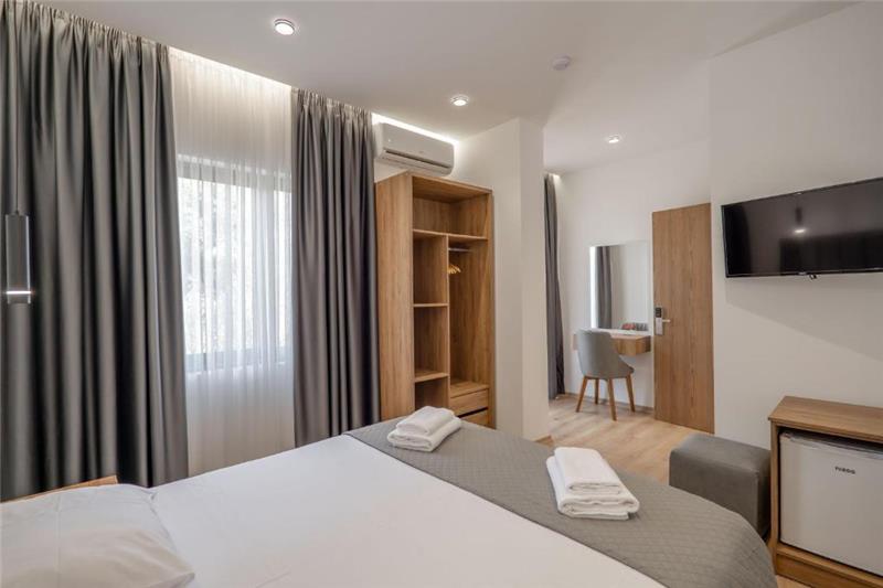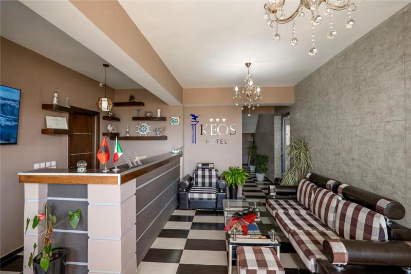 Keos Hotel 3* in Saranda offers family rooms with air-conditioning, balconies, and private bathrooms. Each room includes a tea and coffee maker, minibar, and free Wi-Fi. Standard rooms have mini kitchens