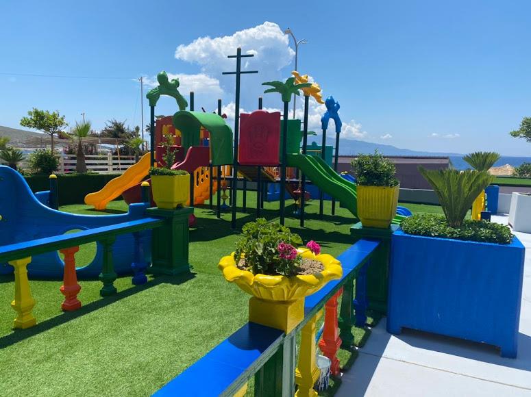 The hotel has a restaurant a la carte, a beach bar, a private beach with umbrellas and sunbeds (an use of 1 umbrella and 2 sunbeds is included in the room price), a children playground, parking and free Wi-Fi throughout the property.