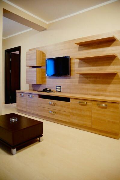 I got a room with a roof window and a beautiful wooden furniture 🥰 Small fridge, TV, air conditioner, locker.