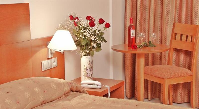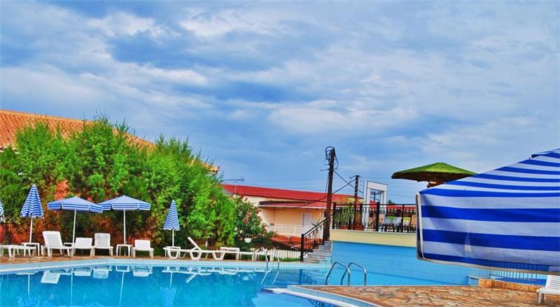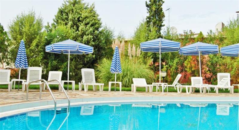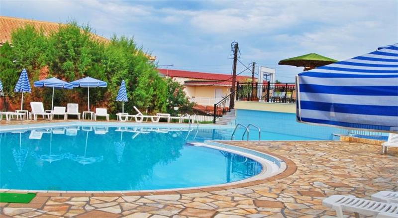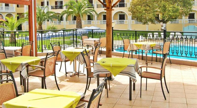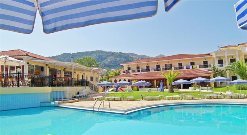 Hotel Palmyra is located near the centre of Argassi, just 100 m from the beach. It offers a swimming pool with sun terrace, a restaurant and rooms with pool or garden views.Elegantly decorated, the air-conditioned rooms at Palmyra are equipped with a satellite TV, mini fridge and hairdryer. All rooms also have a balcony and a private bathroom.Palmyra restaurant serves Greek and international cuisine on the rooftop terrace of the hotel. Guests can also enjoy soft drinks, beers and exotic cocktails at the air-conditioned area of the bar.Within 50 metres, guests will find bars, restaurants and shops. The port and main town of Zakynthos are 3.5 km away. Zakynthos Airport is at 6 km. Palmyra offers Wi-Fi access and on-site parking free of charge.Facilities: