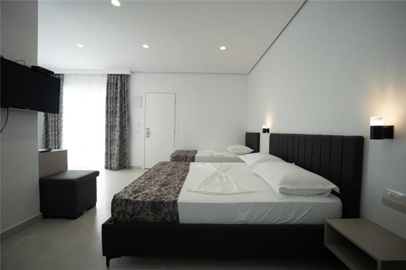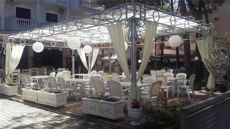 Hotel Kapri 4* is located in Mali i Robit, Golem, just 90 meters from the sandy beach. It provides a 24-hour front desk and currency exchange, a shared lounge, a bar-restaurant, an outdoor swimming pool and a private beach area with umbrellas and sunbeds, a children's playground, a billiards, free parking and Wi-Fi.