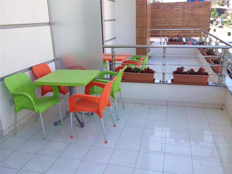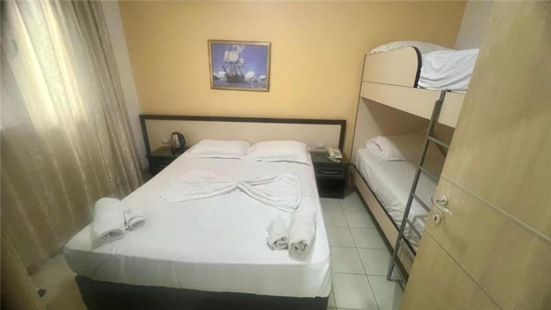 The apartment is 80 sqm with two bed rooms, one living room, toilet, and a balcony with sea view. The apartment is equipped with one double bed, two single beds and one sleeping sofa, kitchen fully equipped, flat screen TV, air condition, kettle, table with chairs inside and outside in the balcony.