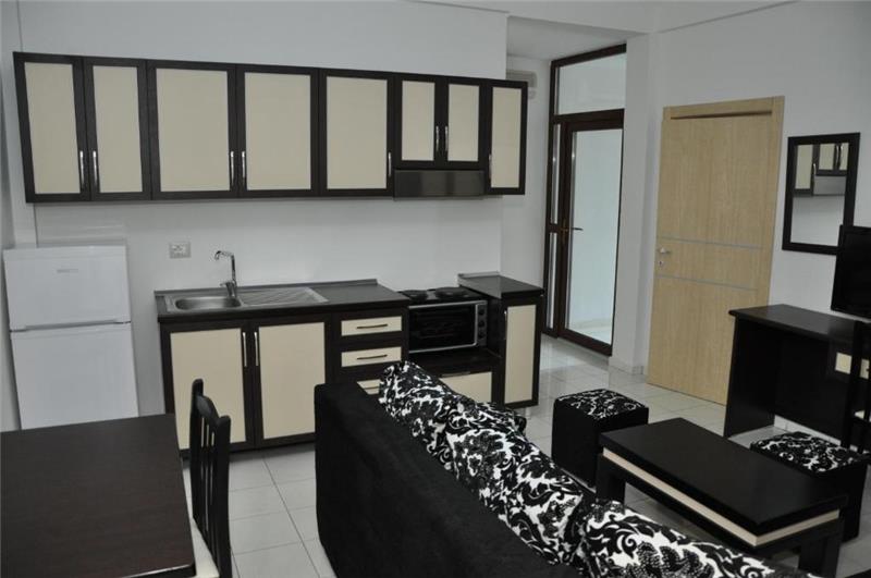 The apartment is 56 sqm with one bedroom, one living room, toilet, and terrace with sea view. The apartment is equipped with one double bed and one sleeping sofa, kitchen fully equipped, flat screen TV, air condition, kettle, table with chairs inside and outside in the balcony.