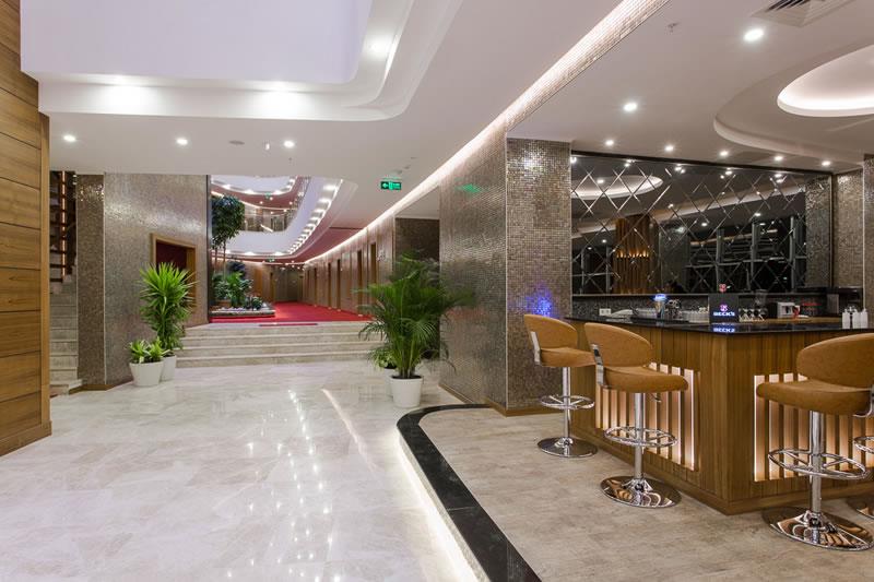 Nje hotel i mrekullueshem i cili nodhet midis gjelberimi dhe lulet shume ngjyreshe vetem disa larg metra larg bregut te detit mesdhe, 10 min larg qytetit te Alanias dhe 1 ore e gjysem larg aeroportit te Antalias . Hoteli sugjerohet vetem per te rinjte dhe ka nje siperfaqe prej 5000 m2 dhe eshte hapur ne 27 mars 2015. Ne dispozicionin tuaj jane 200 dhoma te arredura me kushte luksoze dhe elegante. Dhomat jane te ndara ne : 186 dhoma standart , 12 suita , 2 dhoma per personat me aftesi te kufizuara. Ne kete hotel do te gjeni mundesi te ndryshme argetimi dhe clodhje sic jane : terrenet sportivet , sportet e ujit , abimacione ne pishine dhe ne breg te detit , show , spektakle , shezlongje dhe cadra pergjate pishines dhe ne breg te detit duke ju dhene momente relaksi per te kaluar pushime te paharrueshme. Qendrat e fitnesit , spa , saunave, masazheve dhe banjot turke do jene ne dispozicionin tuaj me programe te posacme dhe trajtime te vecanta per trupin dhe lekuren tuaj. Hoteli eshte i pershtatshme per femije , te rinj dhe familjeret per te kalaur pushime te bukura ne rivieren turke. Baret dhe restorantet – Hoteli operon me sherbimin all inclusive dhe sherben ushqim dhe pije pergjate gjithe dites ne baret dhe restorantet e vena ne dispozicion duke ju ofruar nje shumllojshmeri perzgjedhjesh ne gatime nga guzhina turke dhe ajo nderkombatare. Restoranti kryesor-hapet nga ora 07.00-21.30 sherben vaktet kryesore dhe te ndermjetme ne bufe te hapur duke ju ofruar mundesi zgjedhje nga guzhina turke dhe ajo nderkombatare. Restoranti ndodhet ne zonen e pishines. Restoranti a la carte – sherben darken tuaj ne nje ambjent luksoz dhe sherben specialitete gatimesh nga guzhina nderkombatare dhe hapet nga ora 19.00-21.30. Lobby bar , pool bar dhe beach bar – hapen nga ora 10.00-23.30 dhe sherbejne pije te ndryshme vendase dhe te importit , te ngohta dhe te ftohta , alkolike dhe joalkolike si dhe kokteile me fruta dhe shije te ndryshme, akullore dhe embelsira.