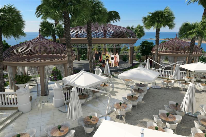 Nje hotel i mrekullueshem dhe shume luksos qe pret te hapi dyer e tij ne maj te 2015 per tju dhuruar pushime te paharrueshme sic nuk i keni shijuar ndonjeher me pare. Hoteli ve ne dispozicionin tuaj ambjente fantastike dhe nje cilesi te larte sherbimi dhe akomodimi. Hoteli ndodhet vetem 1 ore larg aeroportit nderkombetar te Antalias, 5 min larg qytetit turistke Avsallar, 30 min larg qytetit historik te Alanias dhe vetem disa metra nga plazhi I tij privat dhe eshte i pershtatshem per te gjitha moshat, familjaret dhe femijet e tyre duke ju ofruar argetime dhe kenaqesi te pafundme qendrimi ne kete hotel. Terenet sportive , dhe sportet e ujit do te jene ne dispizicionin tuaj per tu ndjere sa me vital dhe me energji pozitive pergjate gjithe qendrimit ne kete hotel. Qendrat e spave, fitnesit dhe Saunave ofrojne kushte te mira dhe trajtime te vecanta per trupin dhe lekuren tuaj duke ju dhene nje kenaqesi te detajshme. Aqua park fantastike dhe tre rreshqitese, 5 pishina per femije ( Giraffe ,frog , Anija pirate, Breshka , animacioni per femije ) miniclub , kendlojrash per femije etj. Animacionet show-t dhe spektaklet nuk do te mungojne pergjate gjithe qendrimit tuaj ne kete hotel te mrekullueshem. Hoteli ofron trajtime dhe programe te vecanta per te gjithe pushuesit qe kalojne muaj mjalti. Baret dhe restorantet– Hoteli operon me sherbimin ultra all inclusive dhe sherben ushqim dhe pije pergjate gjithe dites ne baret dhe restorantet e vena ne dispozicion me nje shumellojshmeri perzgjedhjesh ne gatime dhe pijesh nga guzhina vendase dhe ajo nderkombatare. Restorantikryesor – hapet nga ora 07.00-21.30 dhe sherben vaktet ne bufe te hapur me nje shumellojshmeri perzgjedhjesh ne ushqim. Otoman a la carte restorant – sherben darken me menu a la carta nga ora 19.00-21.30 ne ambjente luksoze me specialitetet me te mira nga guzhina turke. Sushi a la carte restorant – sherben specilalitetet me te mira nga guzhina aziatike. Pasticerikafe- sherben embelsira , caj dhe kafe per te gjithe pushuesit e saj per gjate gjithe dites. Gozleme Evi – sherben gatime te shpejta pergjate drekes me gatime tradicionale turke. Kumpir snack bar – sherben ushqime te shpejta dhe pije pergjate gjithe dites ne breg te detit. Lobi bar , pool bar , beach bar – sherbejne te gjitha llojet e pijeve duke filluar nga ato vendase dhe nderkombetare , te ngrohta dhe te ftohta , alkoolike dhe joalkoolike , kokteile me shije te ndryshme, akullore ,embelsira etj.