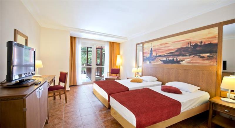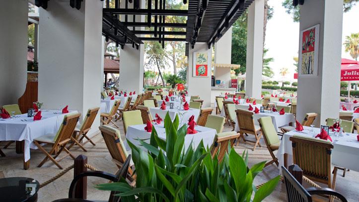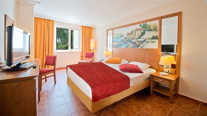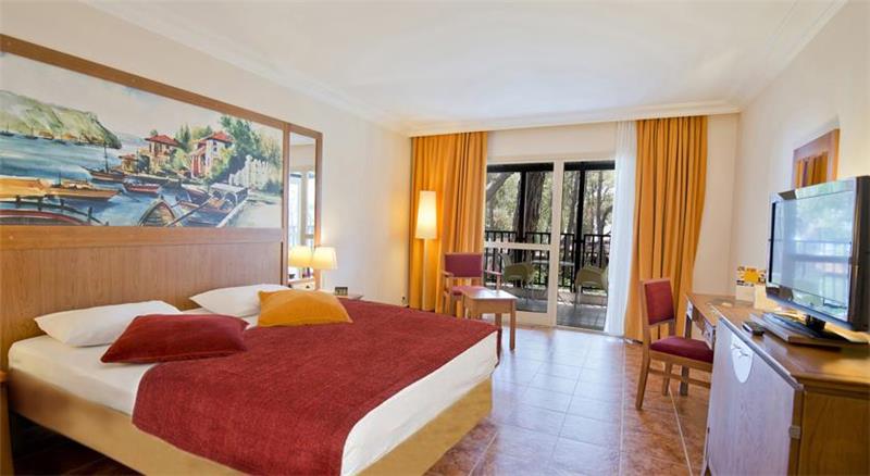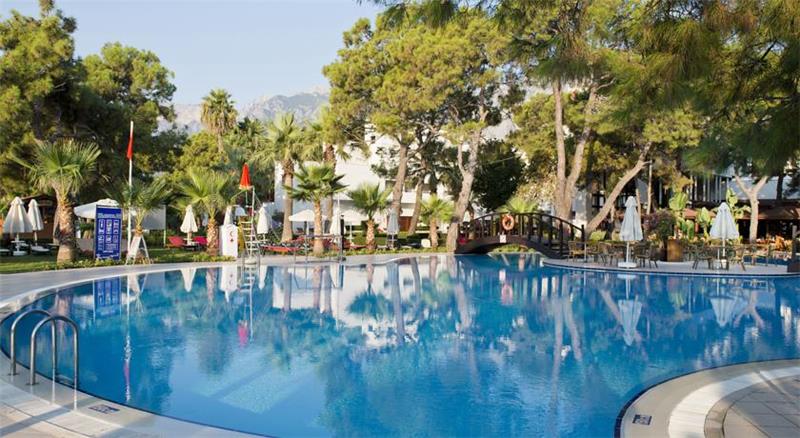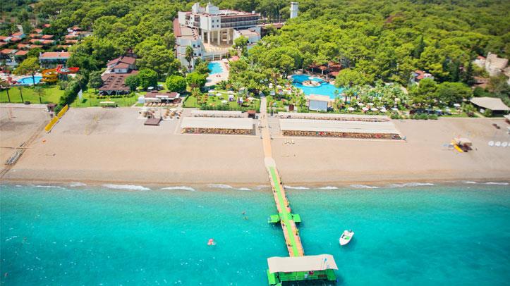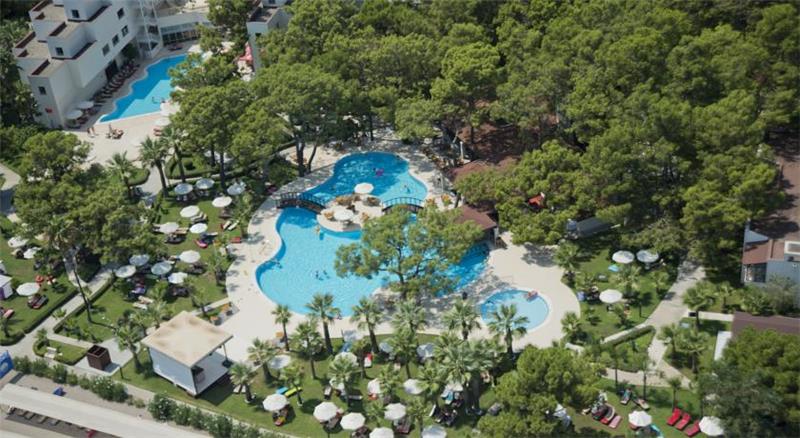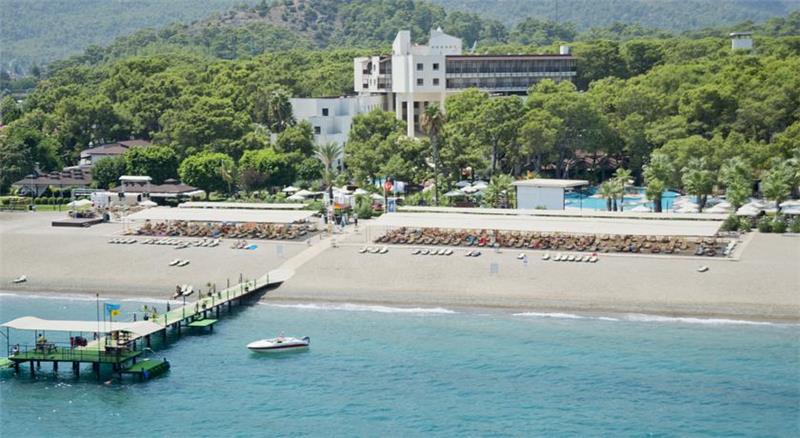 Midis gjelberimit dhe vetem disa metra larg detit shtrihet ky hotel i mrekullueshem qe ndodhet vetem 40 min larg nga aeroporti dhe qendra e Antalias dhe vetem 20 min larg nga qendra e Kemerit i cili eshte nje qytet i pasur me histori dhe me kulture. Hoteli eshte luksoz dhe ofron nje cilesi te larte sherbimi dhe akomodimi per te gjithe pushuesit e saj. Ketu do te gjeni mundesi te pafundme argetimi dhe clodhje dhe eshte i pershtatshem per te gjitha moshat. Qendra e fitnesit dhe e Spa-ve jane ne dispozicionin tuaj me trajtime te vecanta per trupin dhe lekuren. Animacionet dhe spektaklet nuk do te mungojne per asnje moment gjate qendrimit tuaj ne kete hotel. Pishine e brendeshme, e jashtme, pishine per femije me rreshqitese, miniclub, kendlojrash dhe kujdestari. Terrene te posacme profesionale ne fusha te posacme dhe ne breg te detit per te gjithe pushuesit qe duan te ndihen vital dhe plot energji, sportet e ujit per te gjithe te apasionuarit e botes ujore dhe nen ujore koralore. Ne dispozicionin tuaj jane rreth 253 dhoma te ndara ne : 167 dhoma standarte , 10 junior suita , 28 junior superior dhe 46 bungalows. Dhomat jane te arreduara me kushte moderne dhe elegante. Baret dhe restorantet - Hoteli operon me sherbimin all inclusive dhe sherben ushqim dhe pije pergjate gjithe dites ne baret dhe restorantet e vena ne dispozicion me nje shumellojshme perzgjedhjesh ne gatime dhe pije vendase dhe nderkombatare. Restoranti kryesor- sherben vaktet kryesore te gatimit ne bufe te hapur me nje shumllojshmeri perzgjedhjesh ne gatime nga guzhina turke dhe ajo nderkombetare. 2 restorante a la carte sherbejne darken tuaj nga ora 19.00-21.30 me specialitetet me te mira nga guzhina italiane dhe prodhime deti. Italian a la carte restorant - sherben sepcialitet me te mira nga guzhina italiane. Fish a la carte restorant - sherben gatime speciale me baze peshku dhe prodhime deti. Lobby bar , pool bar , beach bar , Disco bar - sherbejne te gjitha llojet e pijeve duke filluar nga ato vendase dhe nderkombatare, te ngrohta dhe te ftohta, alkolike dhe joalkolike, kokteile me shije te ndryshme,