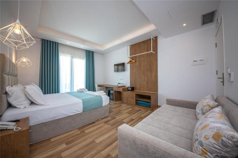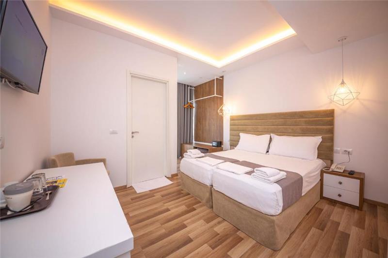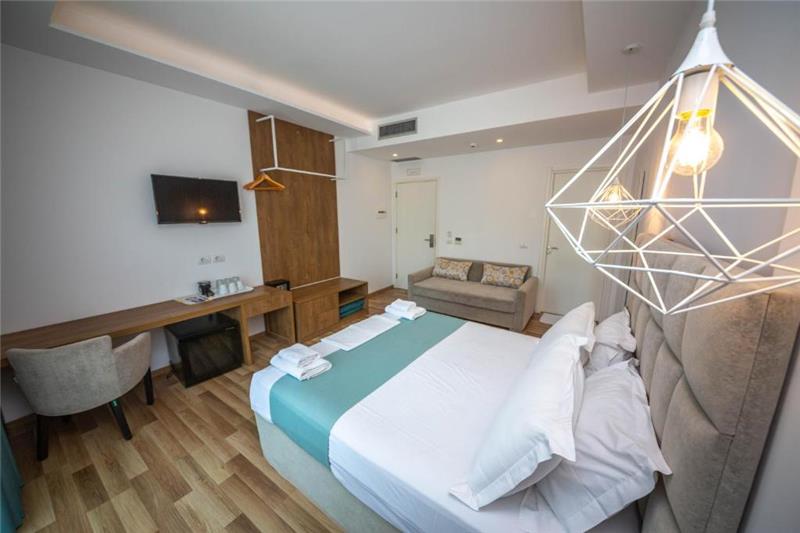 Hoteli ka 4 kate me ashensor dhe 34 dhoma jo-duhanpirës me pamje të pjesshme nga deti. Çdo dhomë ka ballkon, kondicioner, televizor, mini-frigorifer, banjo private me dush, tharëse flokësh dhe artikuj tualeti falas.