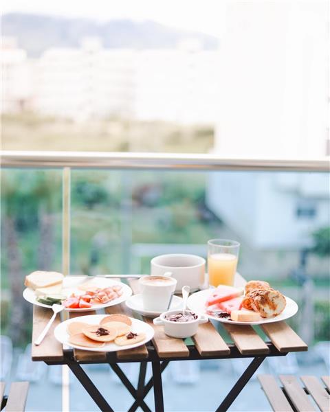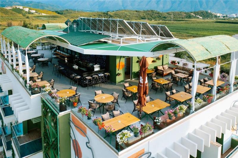 Çdo mëngjes mysafirët e hotelit mund të shijojnë buferin e mëngjesit në barin e sipërm të çatisë.