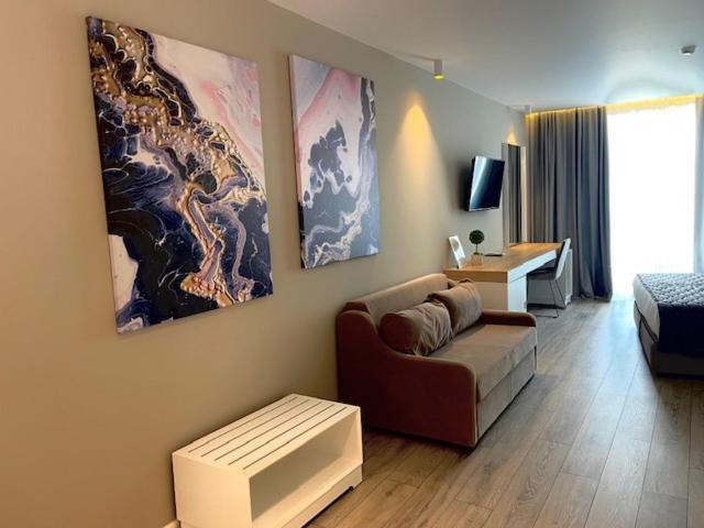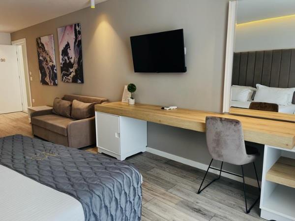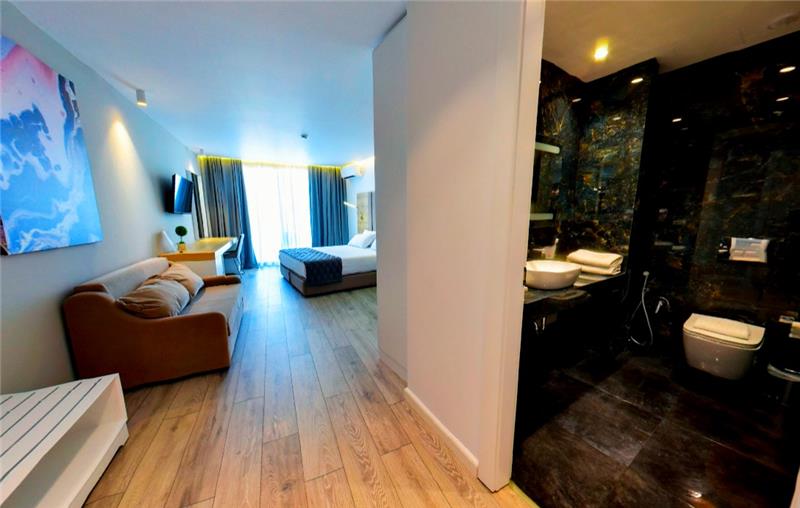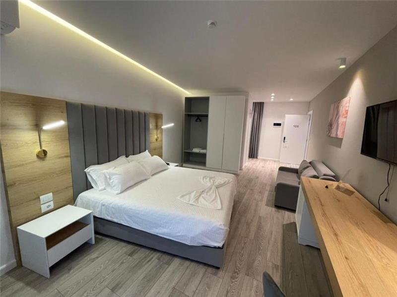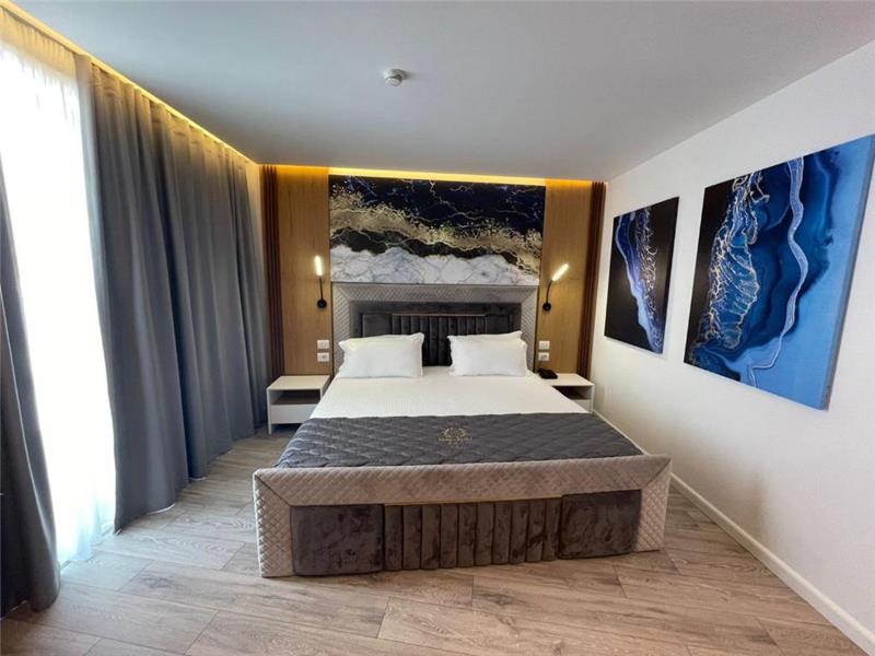 Hoteli ofron akomodim në dhoma luksoze për 2-4 persona dhe suita me xhakuzi për çifte. Çdo dhomë ka ballkon dhe është e pajisur me kondicioner, TV me ekran të sheshtë, minibar, gardërobë dhe tavolinë shkrimi, banjo private me dush, bidet, tualetin falas, peshqir dhe tharëse flokësh.