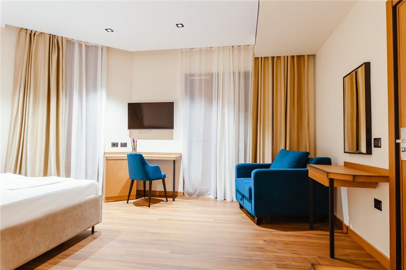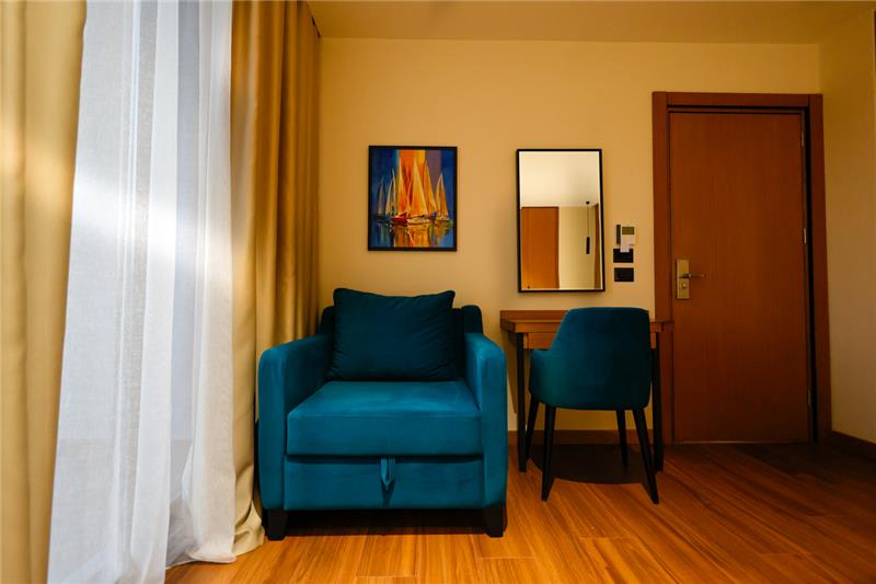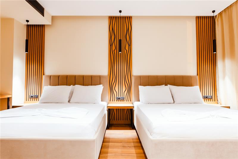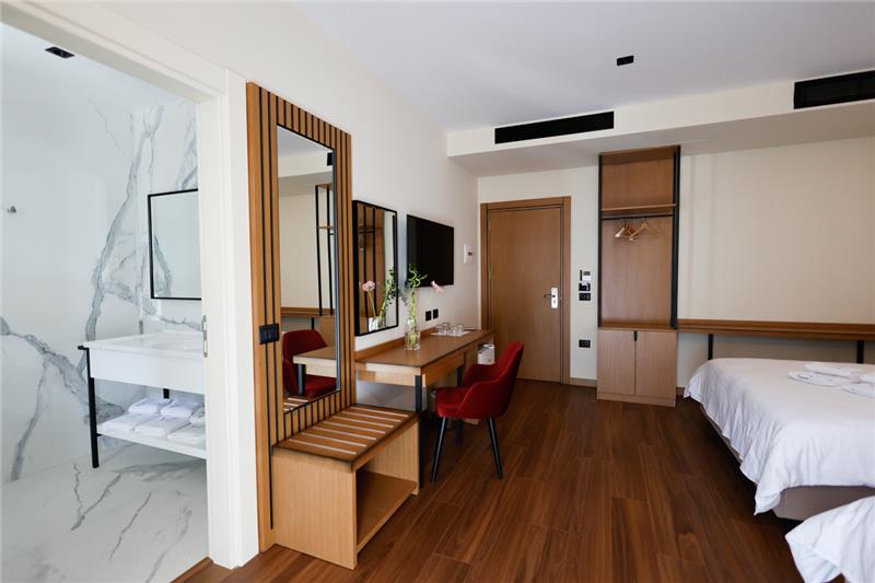 Hoteli ka gjithsej 44 dhoma dhe mund të strehojë deri në 125 persona. Akomodimi është projektuar veçanërisht për çifte, familje fole me fëmijë ose grupe miqsh. Çdo dhomë është plotësisht me ajër të kondicionuar dhe ka dritare me xham të dyfishtë për të mbajtur jashtë nxehtësinë dhe për të reduktuar çdo zhurmë të tepërt dhe është e pajisur me të gjitha lehtësitë: një TV me ekran të sheshtë, një minibar, një banjo private me dush, një tharëse flokësh, peshqir dhe tualetin falas. Ofrohet gjithashtu mëngjes falas, parkim dhe Wi-Fi.
