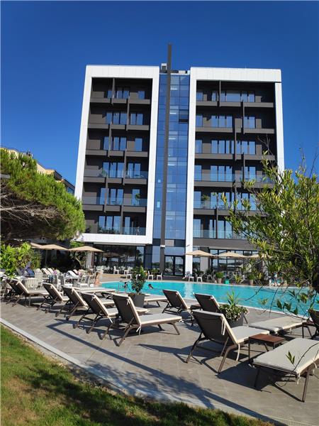 Një ndërtesë hoteli me një kapacitet të planifikuar prej rreth 300 personash, duke ruajtur cilësinë dhe shërbimin me 5 yje. Zonë plazhi privat për klient, dhe pishinë prej 350 m2 e cila është projektuar në përputhje me funksionalitetin; Arkitektura dhe natyra evropiane krijojnë një pasuri të jashtëzakonshme në një zonë ku zonat e plazhit janë shumë të kërkuara.