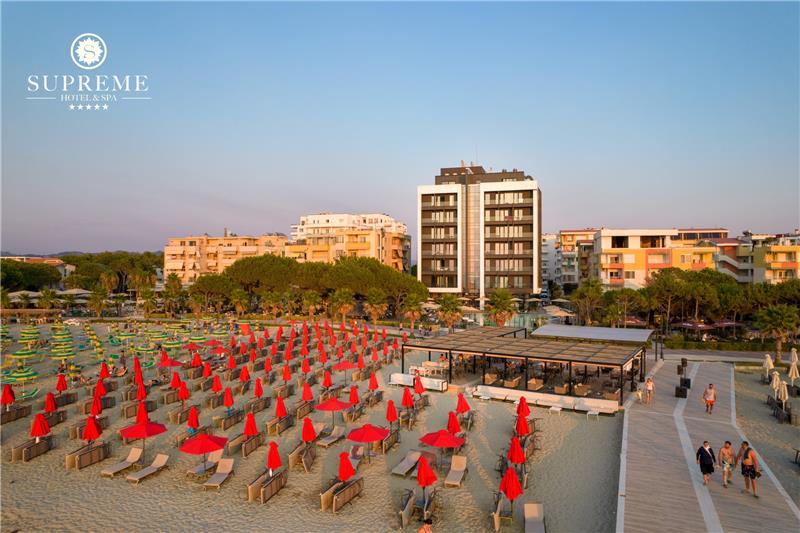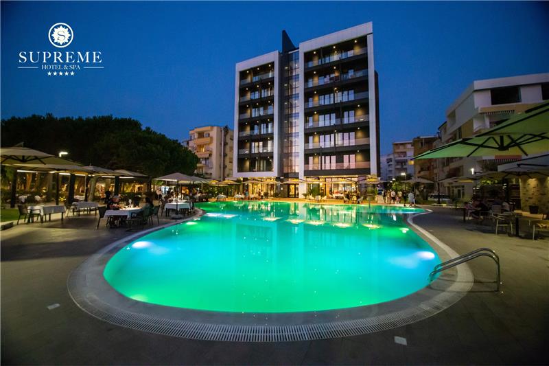 I vendosur në zemër të Shqipërisë, hoteli Supreme 5* ju ofron mundësinë e vërtetë për t'u zhytur në eksperiencën e relaksimit mesdhetar. E ndërtuar në buzë të plazhit, xhevahiri i ri i Adriatikut hapi portat e tij, duke vendosur standarde të larta mikpritjeje. Hotel Supreme & SPA ju garanton mikpritjen perfekte dhe sherbime te cilesise se larte per nje pushim te paharruar luksoz.
