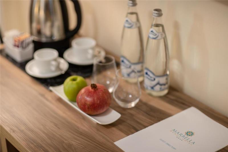 Marbella Beach Hotel është një hotel elegant me 4 yje, i vendosur në zemër të plazhit të gjatë me rërë të Golemit në Durrës, Shqipëri. E drejta pranë detit të bukur Adriatik, hoteli është afër shëtitores, restoranteve, dyqaneve dhe shumë atraksionet lokale. Hoteli ofron transport privat i cili është i disponueshëm sipas kërkesës. Pushuesit mund të zhyten nën diell në plazhin privat me rërë, ose te relaksohen pranë pishinës së hotelit ndërsa jane duke shijuar koktejin e preferuar. Të gjitha dhomat e mysafirëve janë shumë të bollshme dhe ofrojnë një TV të sheshtë me satelit, kanale kabllore, pajisje dhe një minibar. Banjo private të shfaqë një dush dhe gjithmonë vijnë së bashku me një tharese flokesh. Vizitori mund të shijojë pamje nga deti dhe kopshti nga dhoma. Hoteli ofron disa mundesi zgjedhjesh per paketen e ushqimeve. Ju mund te zgjidhni bed and breakfast, half board, all inclusive.