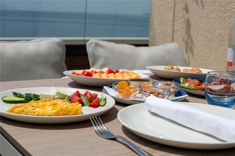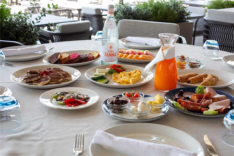 Një mëngjes kontinental shërbehet çdo ditë pa pagese shtese. Gjithashtu hoteli ofron akomodim me gjysmë pansion (darke, pijet përveç ujit nuk përfshihen) dhe shërbim të plotë (dreke+darke, pijet përveç ujit nuk përfshihen) me pagese shtese.Shërbimet: