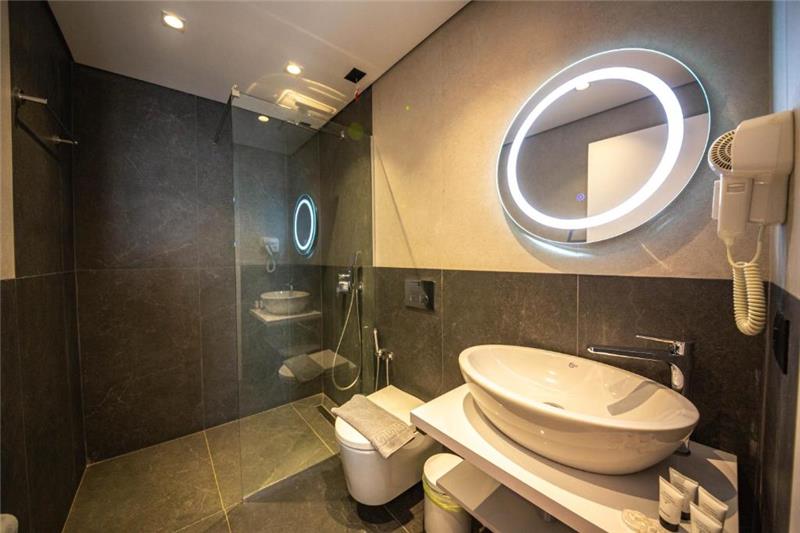 Çdo dhomë hoteli me ajër të kondicionuar vjen me një gardërobë, një tavolinë, një TV me ekran të sheshtë, një kasafortë, një telefon për t'u lidhur me tavolinën e pritjes dhe një banjo private me dush, peshqir, tualetin falas dhe tharëse flokësh. Disa dhoma kanë ballkone dhe pamje nga deti.