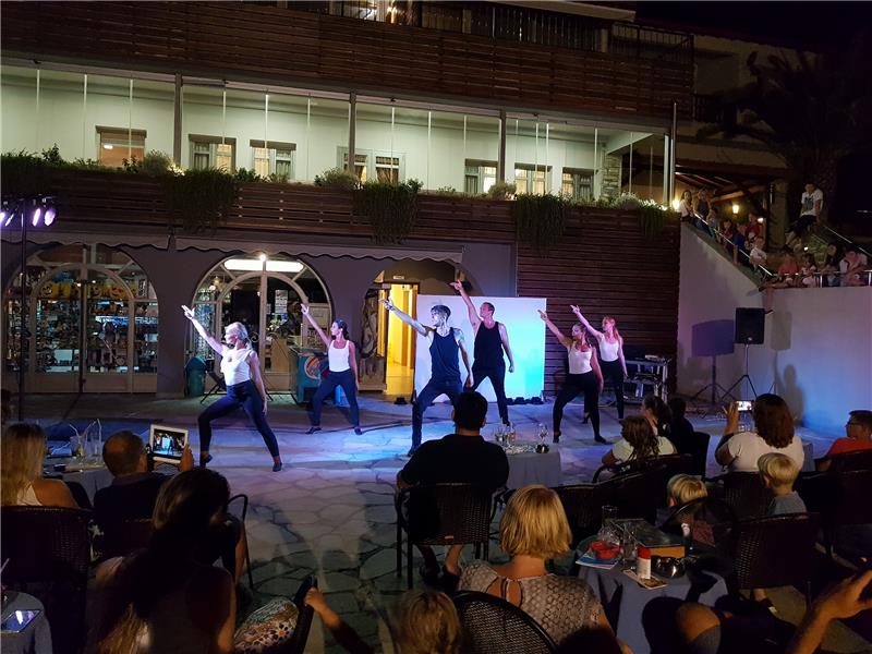 Blue Dolphin eshte nje hotel modern me standarde dhe dizajn te cilesise se larte. Hoteli eshte i rrethuar me kopeshte te bukura e lule shume ngjyreshe, nga rera e arte qe rrethon kete zone si dhe nga ujrat e kristalta te detit Aegean. Ketu do te gjeni nje game te gjere aktivitetesh duke u kujdesur per trupin dhe lekuren tuaj, terapi me masazhe te ndryshme, duke praktikuar sportet e ujit. Dhomat ne Blue Dolphin jane te arreduar me shume shije me pamje nga deti dhe kopeshti. Hoteli ve ne dispozicion 171 dhoma standarte dhe 14 bungalow qe ndodhen afer detit. Baret dhe restorantet: Hoteli ve ne dispozicion 3 restorante dhe 2 bare per te shijuar ushimin tuaj te preferuar dhe per te shijuar pijet tuaja. Celleste restorant: ketu gatimet jane te fresketa dhe me produkte bio. Mengjesi sherbehet me bufe te hapur. Tavern Restorant – ndodhet afer zones se pishines me gatime tradicionale greke. Restorant a la Carta – ketu sherbimi behet ne tarracen e ketij hoteli duke ju ofruar nje pamje te mrekullueshme te zones perrreth. Ketu sherbehen gatime me prodhime deti. Snack Bar dhe bari ne pishine – ndodhen afer pishines ketu sherbehen pije dhe kokteile te ndryshme.