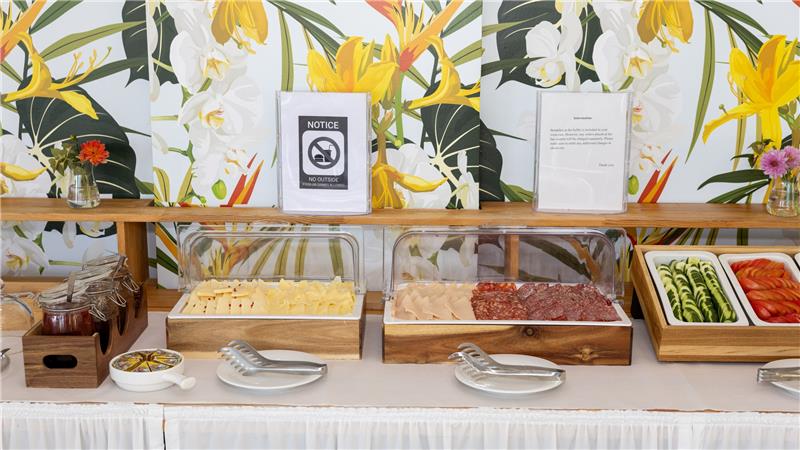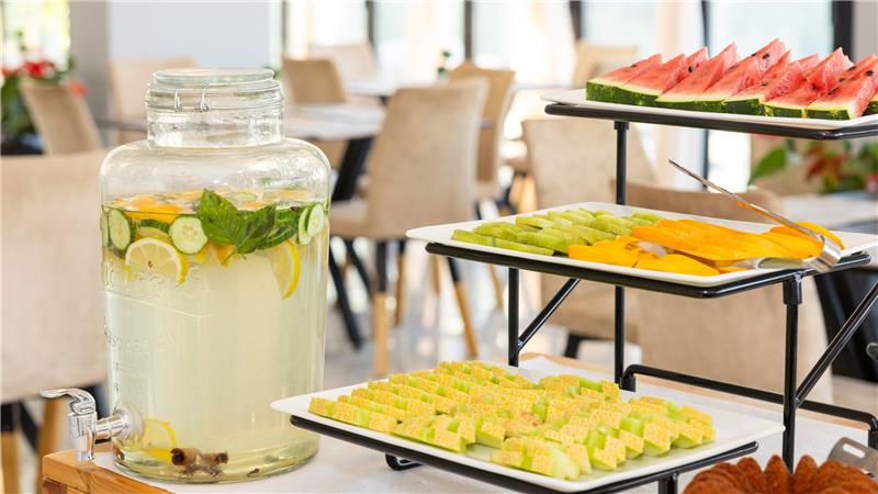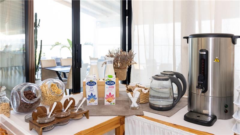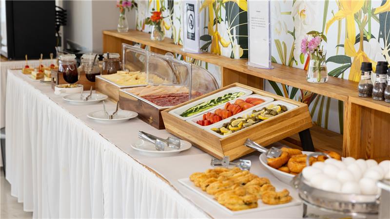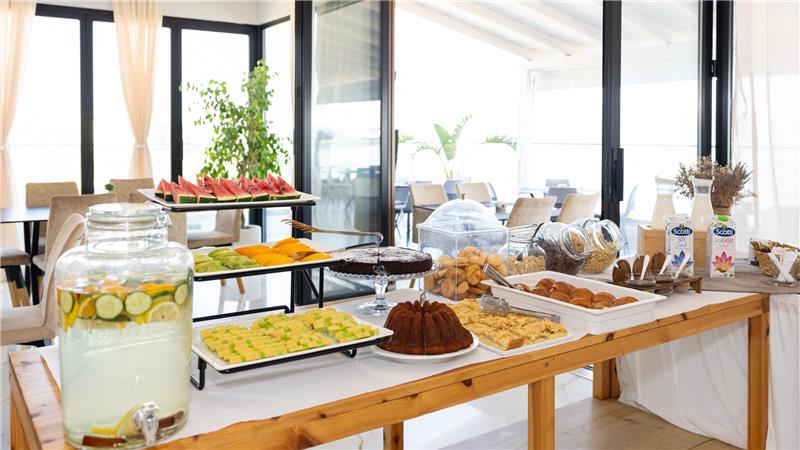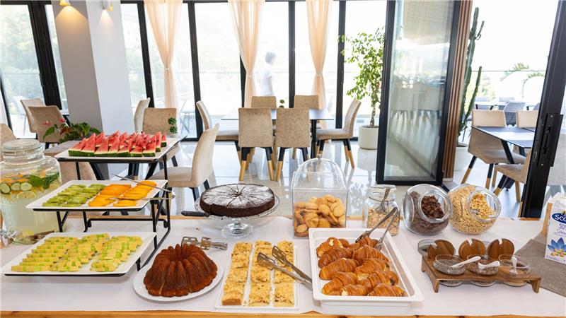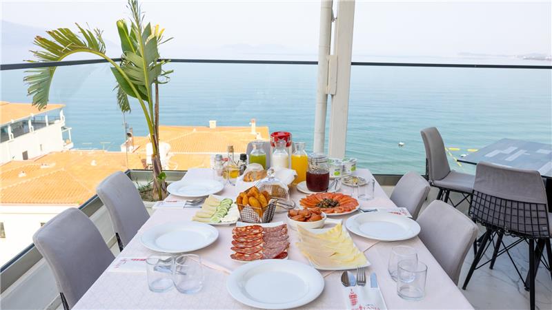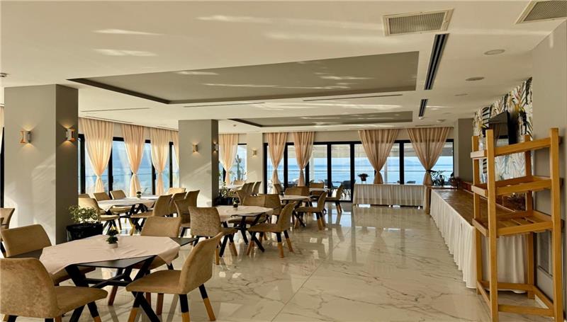 Çdo mëngjes, mysafirët e hotelit mund të shijojnë bufe mëngjesi në restorantin e hotelit me pamje të mrekullueshme nga deti.