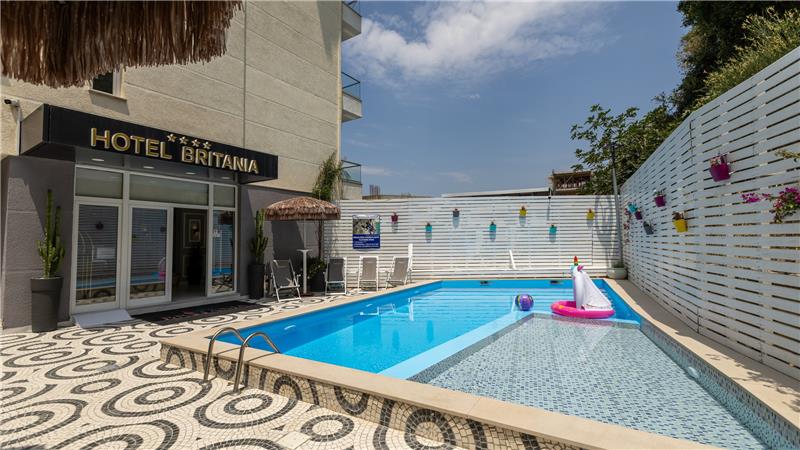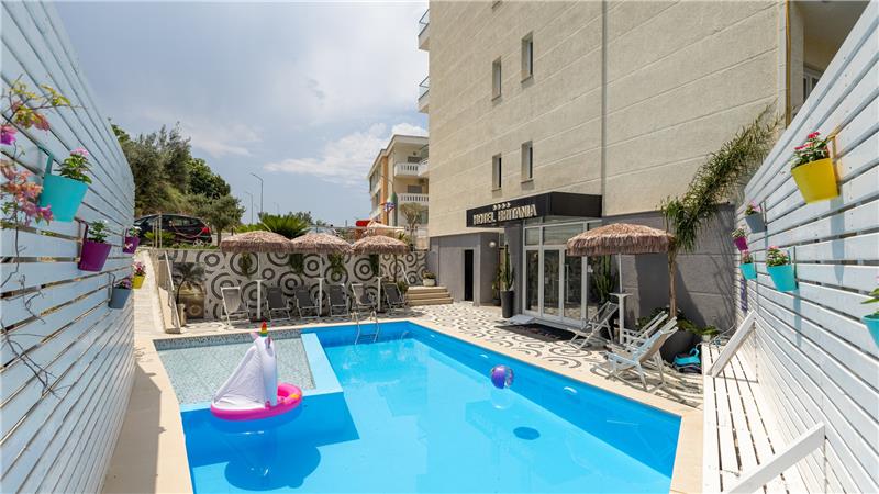 I vendosur në Vlorë, 300 metra nga Plazhi i Ri (Plazhi i Ri), Hotel Britania ofron akomodim me një bar-restorant me tarracë me pamje nga deti, një pishinë të jashtme sezonale për të rritur dhe fëmijë, një zonë private sezonale me plazh me rërë dhe një parking privat.