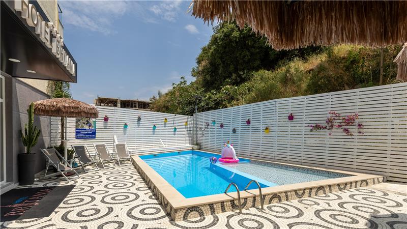 Pishina dhe plazhi i hotelit janë të hapura nga 1 maji deri më 31 tetor. Zona e plazhit me bar plazhi është 3 minuta në këmbë nga ndërtesa e hotelit. 1 ombrellë dhe 2 shezlongje ofrohen falas për çdo dhomë.Shërbimet: