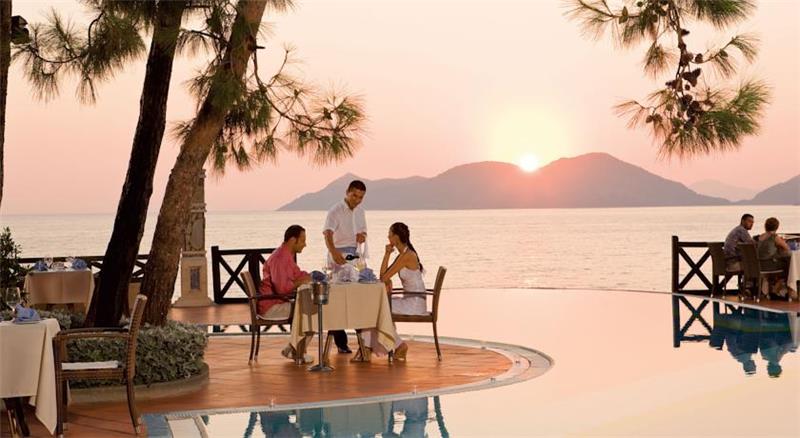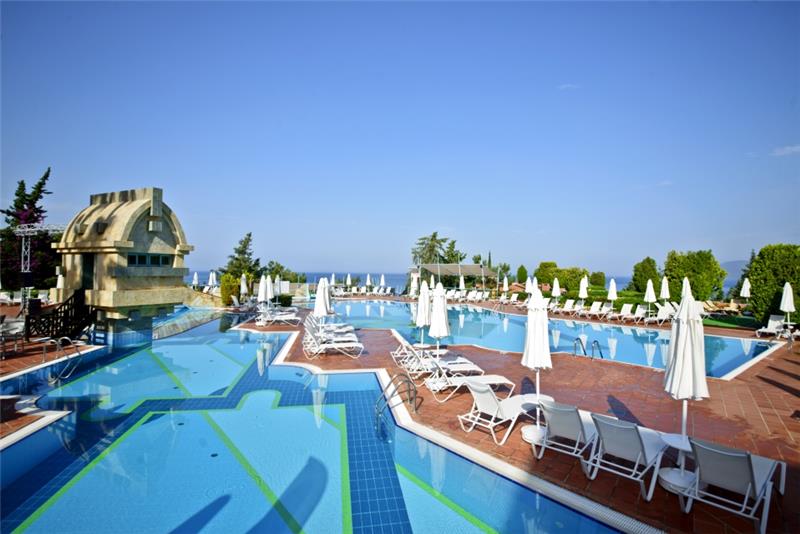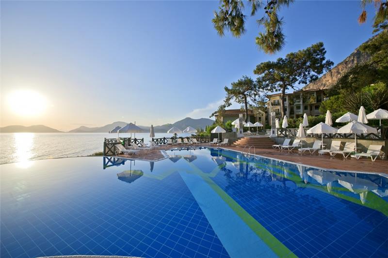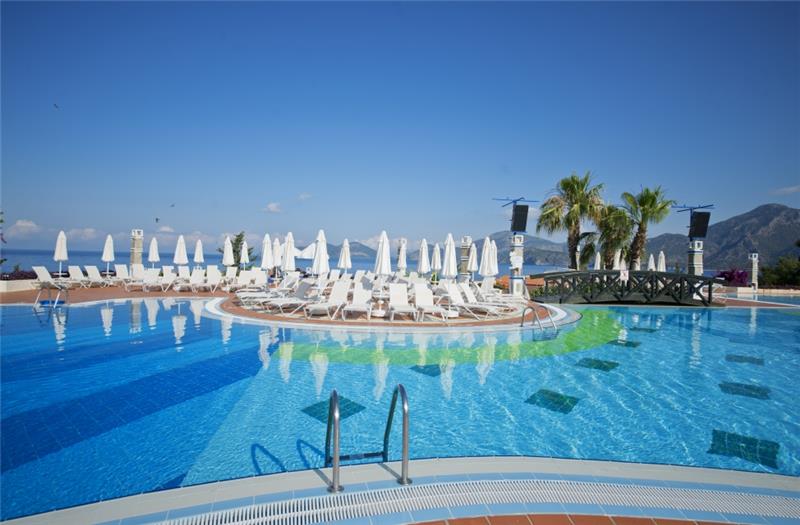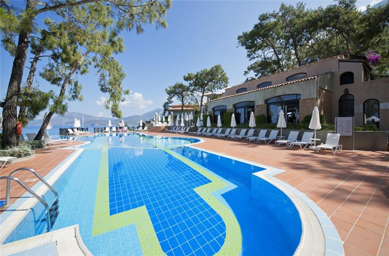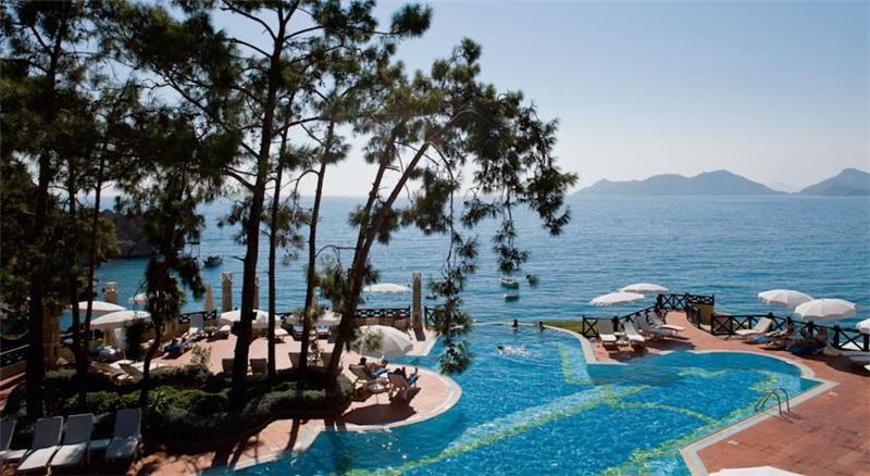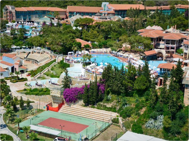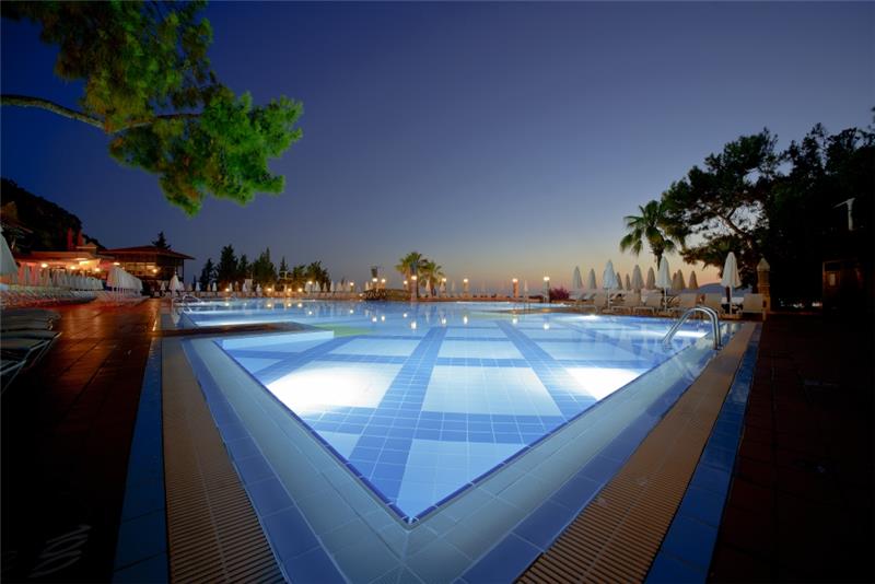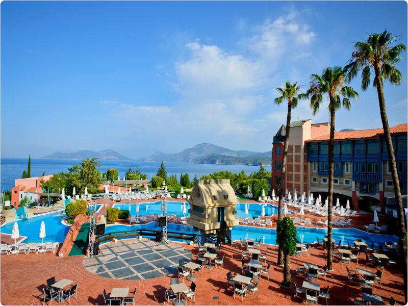 Nje resort i mrekullueshem qendodhet ne bregdetin me te bukur te rivieres turke ne ate te Fetie qe ka njebukuri natyrale te paprekur nga dora enjeriut dhe mjaft te gjelberuar. Hotelieshte rinovuar ne vitin 2014 dhe ka njesiperfaqe prej 87.500 m2 vetem nje orelarg aeroportit dhe 15 min larg qendres se Qytetit qeeshte interesante per tu vizituar dhe bere shopping. Hoteli ofron 269 dhoma ne total me 810krevate. Dhomat jane me pamje nga detidhe nga kodra te ndara ne: dhome standarte, dhome dyshe, delux suite, dhomenderlidhese familjare. 6 Pishina jane ne dispozicionin tuaj me dimensione te ndryshme per te gjitha moshat duke filluarnga femijet, adoleshentet dhe territurit. Ne kete resort do te gjeni mundesi te ndryshme argetimi dhe clodhje. Qendrat e fitnesit dhe e spa-ve jane nedispozicionin tuaj me trajtime te vecanta per trupin dhe lekuren tuaj. Animacionet,show-t dhe spektaklet nuk do te mungojne per asnje moment gjate qendrimit tuajne kete hotel. Hoteli ofron 6 pishina ne dispozicionin tuajme dimensione te ndryshme per te gjithamoshat duke filluar nga femijet, adoleshentet dhe te rriturit, miniclub, kend lojrash per femije etj.Terrene te posacme profesionale ne fusha te posacme dhe ne breg te detit per tegjithe pushuesit qe duan te ndihen vital dhe plot energji, sportet e ujit perte gjithe te apasionuarit e botes ujore dhe nen ujore koralore. Pushimet tuajane kete resort do te jene te mrekullueshme. Baretdhe restorantet - Hotelioperon me sherbimin Ultra All inclusivedhe sherben pije dhe ushqime pergjate gjithe dites ne baret dhe restorantet evena ne dispozicion. Ketu do te gjeni gatimet me te mira nderkombetare dhe atovendase. Restoranti kryesor – hapetnga ora 07.00-21.30 dhe sherben vaktet kryesore ne bufe te hapur dhe servitgatime te ndryshme nga guzhina nderkombetare. La vesta a la carte restorant –hapet nga ora 19.00-21.30 dhe sherben specialitet me te mira nga guzhinaitaliane si dhe specialitetet me te mirate zgares. Lykia snack restorant - hapet nga ora 12.00-17.00 dhe sherben gatime te shpejta gjate vaktit tedrekes. Sushi a la carte restorant – kapaciteti 32 persona, hapet ngaora 19.30-22.00 dhe sherben gatimet speciale nga guzhina Aziatike. Sarpendon a la carte restorant – kapaciteti 40 persona dhe sherben gatimespeciale nga guzhina mesdhetare. Pinara a la carte restorant –kapaciteti 40 persona, sherben darken meme gatime speciale nga guzhina turke. Blu buda a la carte restorant – ka njekapacitet prej 65 personash dhe sherben gatime speciale nga guzhina aziatike. Lobby bar, beach bar, pool bar -sherben te gjitha llojet epijeve vendase dhe te importit , pije tengrohta dhe te ftohta, alkoolike dhe joalkoolike, kokteile te ndryshmeshumengjyreshe etj.