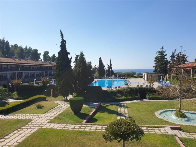 Simantro Beach është i vendosur në anën veri-perëndimore të gadishullit Kasandra, në zonën e njohur edhe Sani i rrethuar me pisha. Ketu do te gjeni cilesi te larte sherbimi dhe arredimi, mikpritje. Hoteli ofron nje game te gjere aktivitetesh dhe sherbimesh si: terrene sportive per te rritur dhe femije, qendra fitnesi, sauna, spa, jakuzzi per kujdesin e lekures dhe trupit tuaj. Gjithashtu nje vemendje te vecante ju kushtohet dhe femijeve duke ju vene ne dispozicion kend lojrash dhe animacione te ndryshme ne pishine dhe ne det. Hoteli ka 346 dhoma te shperndara ne 15 ndertesa, te cilat jane ndare ne 2 grupe ndertesash, e para eshte me afer me detin dhe dhomat jane te pajisura me jacuzzi dhe ndertesa e dyte ofron pamje nga kopeshti. Nje tjeter kenaqesi e madhe ne kete hotel eshte dhe ushqimi qe serviret me shume dashuri dhe cilesi nga mjeshtrat e guzhines. Baret dhe restorantet: Hoteli ve ne dispozicon te pushuesve te tij baret dhe restorantet duke ju dhene mundesi zgjedhje sipas gustos dhe shijes se tyre. Restoranti kryesor - sherbehen ushqime tradicionale greke dhe nderkombetare ne buffe te hapur. Restoranti Troulos – servire menu a la carta ne tarracen e hotelit dhe ketu do te gjeni gatime me baze peshku me guzhine mesdhetare. Baret jane bar :ne pishine dhe ne plazh, lobby bar dhe evening bar - ketu serviren te gjitha llojet e pijeve te ngrohta dhe te ftohta, alkolike dhe joalkolike, kokteile, akullore etj.