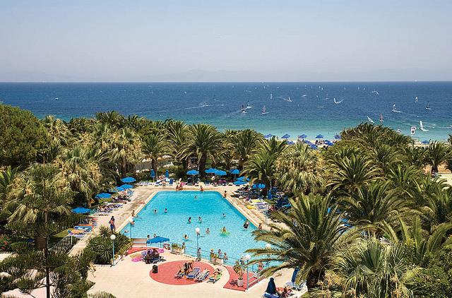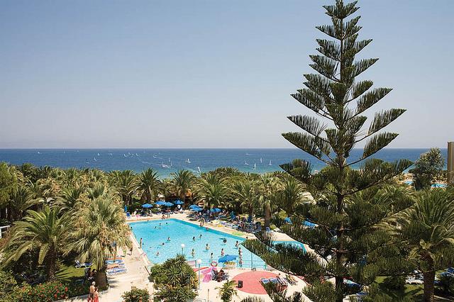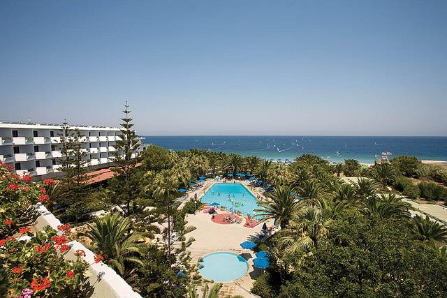 Blu horizon hotel ndodhet ne breg te detit vetem 10 minuta larg nga qendra e qytetit te Rodosit dhe aeroportit te tij dhe ofron cilesi te larte sherbimi dhe akomodimi per te gjithe te ftuarit e saj. Ketu do te gjeni ambjente luksoze rrethuar me gjelberim dhe parqe me lule shumengjyreshe duke ju dhene ndjesine e kenaqesise dhe te clodhjes. Natyra ne kete zone eshte unike me nje det fantastik dhe mjaft te paster qe ndodhet per vlerat e tij te pastertise. Ne dispospozicionin tuaj jane 211 dhoma te arredura me kushte moderne dhe mjaft luksoze per nje qendrim sa me perfekt. Dhomat jane te ndara ne : dhoma dyshe , bungalow me pamje nga kopeshti dhe bungalow me pamje nga deti. Ketu do te gjeni mundesi te pafundme argetimi dhe clodhje sic jane : terrenet sportive , sportet e ujit , pishine e brendeshme ,pishine e jashtme me rreshqitese dhe pishine per femije te pajisura me cadra dhe shezlongje per tju dhene kenaqesi dhe ndjesi clodhje. Kurse profesionale serfi dhe sportet e ujit per te gjithe aventurieret e zbulimit te botes nen ujore koralore. Baret dhe restorantet : Hoteli operon me sherbimin half board dhe sherben mengjesin dhe darken ne restorantin kryesor me gatime speciale nga guzhina greke dhe ajo internacionale. Pool bar , beach bar – sherbejne pije pergjate gjithe dites duke filluar nga pijet e ngohta, pijet e ftohta, pijet alkolike dhe ato te importit.