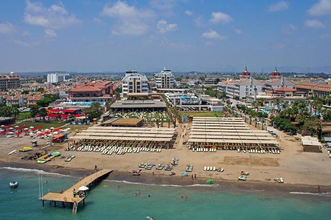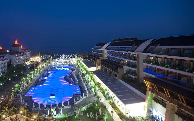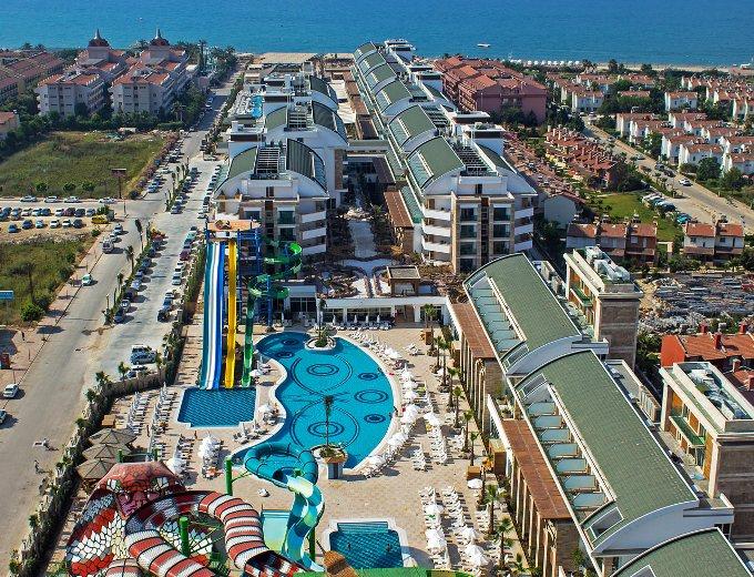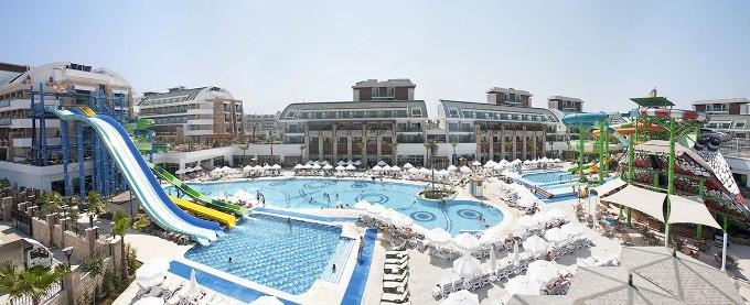 Nje hotel i mrekullushem qe ofron nje cilesi te larte sherbimi dhe akomodimi per te gjithe te ftuarit e tij vetem disa metra larg bregut te detit te zones turistike Bogazkent qe laget nga ujrat e kristalta te detit Mesdhe. Ne dispozicionin tuaj jane 882 dhoma te shtruar me parket laminat ose dysheme qeramike duke ju ofruar kushte bashkohore dhe moderne per te gjithe te ftuarit e saj. Gjate pushimeve tuaja jo vetem mund te pushoni por mund te kryeni nje sere aktivitesh sportive dhe mundesi te pafundme argetimi dhe clodhje te pershtatshem per te gjitha moshat. Qendra e fitnesit dhe e Spa-ve jane ne dispozicionin tuaj me trajtime te vecanta per trupin dhe lekuren tuaj. Animacionet show-t dhe spektaklet nuk do te mungojne per asnje moment gjate qendrimit tuaj ne kete hotel. Pishine e brendeshme , e jashtme , pishine per femije me rreshqitese , miniclub , kendlojrash dhe kujdestari . Terrene te posacme profesionale ne fusha te posacme dhe ne breg te detit per te gjithe pushuesit qe duan te ndihen vital dhe plot energji, sportet e ujit per te gjithe te apasionuarit e botes ujore dhe nen ujore koralore. Baret dhe Restorantet: Baret dhe Restorantet : Hoteli operon me sherbimin ultra all inclusive dhe sherben ushqim dhe pije pergjate gjithe dites ne baret dhe restorantet e vena ne dispozicion me nje shumellojshme perzgjedhjesh ne gatime nga guzhina turke dhe ajo nderkombetare. Crystal Restaurant – sherben vaktet kryesore dhe te ndermjetme ne bufe te hapur me mundesi te pafundme zgjedhje sipas deshires tuaj. Aqua Snack Restaurant- hapet nga ora 12.00-16.30 dhe sherben gatime te shpejta gjate vaktit te drekes . Arena Snack Restaurant- hapet nga ora 12.00-16.30 dhe sherben ushqime te shpejta si pizza dhe sanduic gjate vaktit te drekes. Caretta Beach Restaurant- hapet nga ora 12.30 -16.30 dhe sherben dreken tuaj. Cade De Patisserie- sherben embelsira dhe pije pergjate gjithe dites. Anatolia a la carte restaurant – hapet nga ora 19.00-21.30 dhe sherben specialitetet me te mira nga guzhina italiane. Al Dente Restaurant- sherben gatime special me baze peshku dhe prodhime deti. Sailors a la carte restaurant- sherben gatime speciale nga guzhina italiane . Latino a la carte restaurant- sherben gatime special nga guzhina latine dhe ajo meksikane. Dragon Restaurant – sherben vaktet e vona. Lobby Bar,Lobby Lounge,Sunrise Bar,Arena Bar,Poseidon Pool Bar,Aqua Snack Bar,Cobra Bar,Caretta Beach Bar, Irish Pub Bar, Cafe De Patisserie Bar, Sunset Bar, Atlantis Bar, Prestige Bar, H2O Disco Bar, Mini Bar - sherbejne te gjitha llojet e pijeve duke filluar nga ato te ngrohtat te ftohtat , alkoolike dhe joalkoolike vendase dhe te importit , kokteile shumengjyreshe me shije te ndryshme.