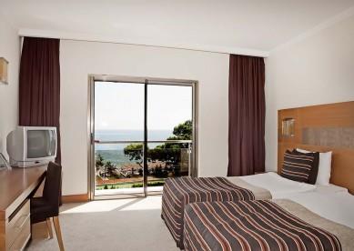 Hoteli lidhet me plazhin me ane te nje nenkalimi.