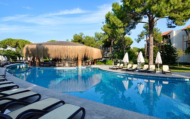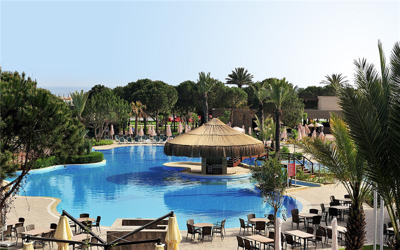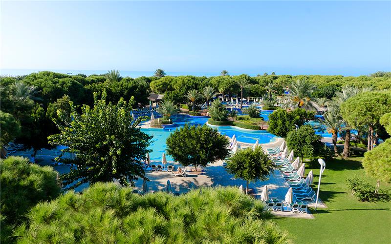 Nje hotel i mrekullueshem qe ofron nje cilesi dhe standart te larte sherbimi dhe akomodimi per te gjithe te ftuarit e saj i ndodhur ne pjesen me te bukur te rivieres turke me rere te arte qe laget nga ujrat e kristalta te detit mesdhe. Gloria Golf Resort eshte e lokalizuar afer lumit Acisu dhe lidhet me detin me ane te nje ure. Ky hotel ka mare nje sere cmimesh qe nga viti 1999-2009, si Tourism Star Award in Alternative Tourism - Akdeniz Press FoundationBlue Flag – TURÇEV / FEE, 2007 Tourism Oscar - World Express Gazetesi, TUI Holly, Golf Journal Magazine, 5th Best Golf Resort, 7th Best Golf Resort Courses etj. Hoteli ka 515 dhoma ne total dhe 1276 shtreter, 293 dhoma standarte, 79 junior suite, 24 suita, 1king suite, 24 villa,18 executive villa dhe 72 suita familjare Gloria. Ky hotel ne menyre qe tju ua beje pushimet me te bukura dhe me te rehatshme ve ne dispozicionin e cdo pushuesi: pishine te jashtme dhe te brendshme, pishine per femije, akuapark, peshqira, cadra dhe shezlongje, klub femijesh Gig, mini kinema, sauna, hamam, banjo me avull, fushe tenisi dhe pajisje tenisi, aerobi, mini futboll, kurse golfi (18+9+18 holes), mesime golfi, mini golf, sporte ujore, canoeing, windsurf, parasailing, Jet Ski, banana, water skiing, volejboll ne plazh,water polo, aerobi, gjimnastike ne uje, archery, boccia, football, air rifle shooting, telefone, fax, internet, sallon bukurie, sherbime ne dhome, pastrim kimik, lavanderi, makina me qera , fotograf, babysitting, masazhe, sherbime mjekesore “Asklepion” Thalasso Therapy Centre, 2 salla konferencash, amfiteater. Baret dhe Restorantet: Hoteli operon me sherbimin ultra all inclusive dhe sherben ushqim dhe pije pergjate gjithe dites ne baret dhe restorantet e vena ne dispozicion me nje shumellojshme perzgjedhjesh ne gatime nga guzhina turke dhe ajo nderkombetare. Ky hotel ka 2 restorante kryesore Anatolia restorant me nje kapacitet 285 personash ne ambjentet e brendshme dhe 404 persona ne ambjentet e jashtme dhe Mozaik restorant me kapacitet 145 persona ne ambjentet e bendshme dhe 145 persona ne ambjentet e jashtme. Gjithashtu ky hotel ofron edhe A La Carte restorant qe sherben darken tuaj nga ora 19.00-21.30 ne ambjente luksoze dhe moderne. Ancora a la carte restorant- sherben specialitetet me te mira nga guzhina italiane. Pescado a la carte restorant- sherben darken me prodhime deti. Harem a la carte restorant- sherben gatimet me te mira nga guzhina nderkombetare. Turkuaz a la carte restorant – sherben gatime speciale nga guzhina tradicionale turke. Club a la carte House restorant & Bar- sherben gatimet me te mira nga guzhina nderkombetare. Gloria Pub bar me prodhime snack, Lobby Bar Galeon bar, Oasis Bar ,Garden Pool Bar ,Café Gloria dhe Pier Bar- sherbejne te gjitha llojet e pijeve duke filluar nga ato te ngrohtat te ftohtat , alkolike dhe joalkolike vendase dhe te importit , kokteile shumengjyreshe me shije te ndryshme.