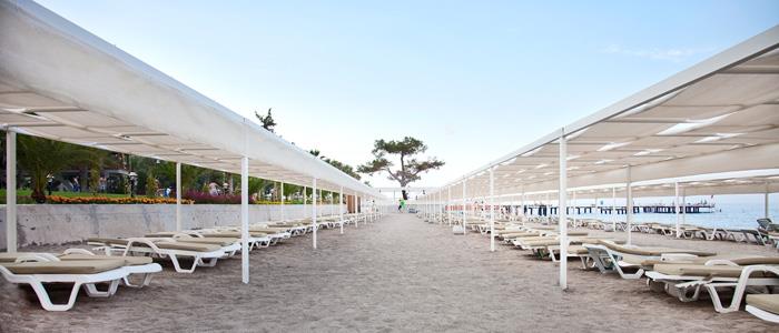 - Shezlonge dhe çadra ne plazh