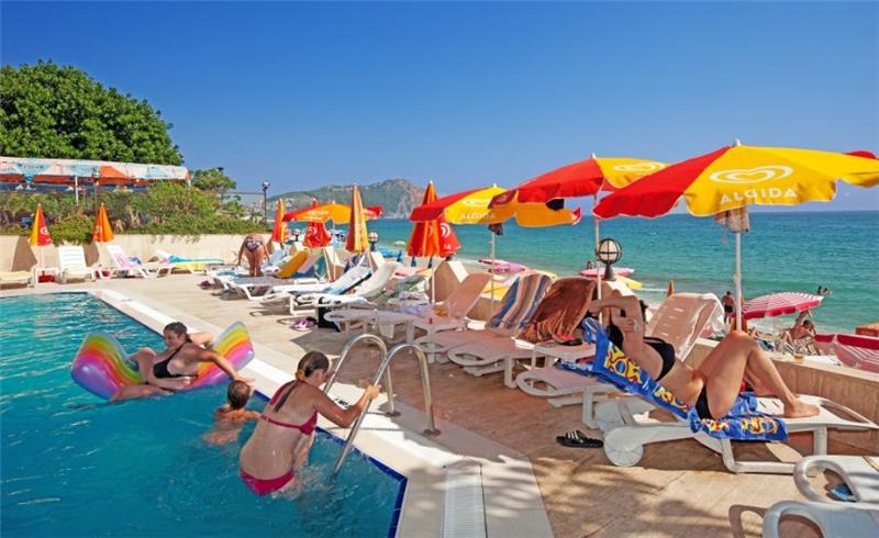 I lokalizuar ne breg te detit ne zonen Kleopatra beach ne Alania rreth 1 ore 15 min larg nga aeroporti i Antalias. Hoteli ofron kushte te mira per te kaluar pushime te mrekullueshme dhe eshte i pershtatshem per te gjitha moshat duke filluar nga te rinjte, familjaret dhe femijet e te gjitha moshave. Ne dispoziconin tuaj jane : 93 dhoma te arredura me shije dhe me kushte cilesore per nje qendrim sa me te . Hoteli ofron pishine te jashtme , pishine te brendeshme, pishine per femije si dhe cadra dhe shezlongje perreth tyre. Qender fitnes, jakuzzi, hamam, spa-je me trajtime te vacanta per trupin dhe lekuren tuaj. Aktivitete sportive, sportet e ujit, animacionet ne pishine dhe ne det do ju shoqerojne pergjate gjithe qendrimit tuaj ne kete hotel. Hoteli eshte i rrethuar me gjelberim dhe me lule shumengjyreshe per te kalur momente clodhje dhe kenaqesie. Baret dhe restorantet : Hoteli operon me sherbin all inclusive dhe sherben gatime dhe pije pergjate gjithe dites ne baret dhe restorantet e vena ne dispozicion. Ketu sherben gatime nga guzhina turke dhe ajo nderkombetare.Restoranti kryesor – sherben vaktet kryesore ne bufe te hapur me menu perzgjedhje nga guzhina turke dhe ajo nderkombetare dhe hapet nga ora 07.00-21.30. Turkish a la carte restorant- sherben darken ne ambjente luksoze dhe hapet nga ora 19.00-21.30. Beach bar , pool bar , lobby bar, disco bar - sherben te gjitha llojet e pijeve duke filluar nga ato te imporit dhe vendase , alkoolike dhe joalkoolike , te ngrohta dhe te ftohta si dhe kokteile te ndryshme shumengjyreshe.