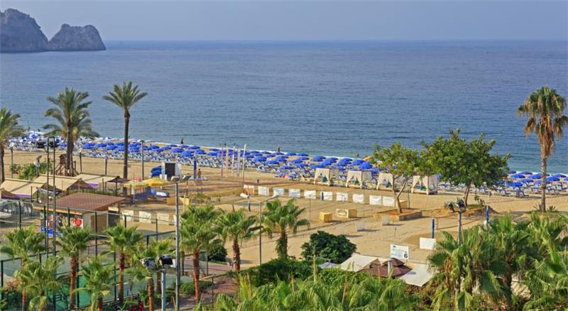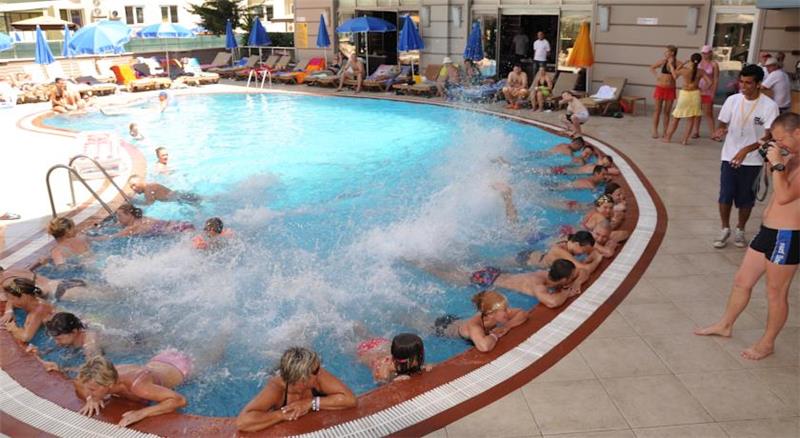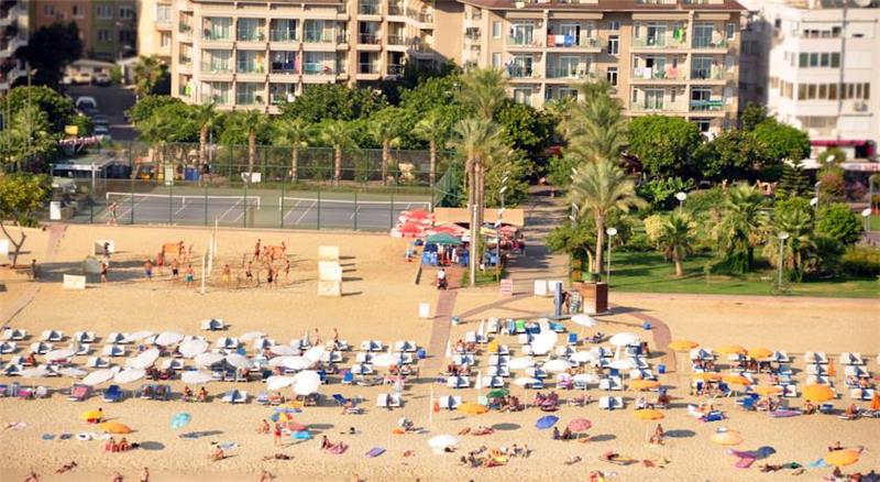 Hoteli ndodhet ne breg te detit ne plazhin e njohur Kleopatra, disa metra larg qendres se qytetit te Alanias dhe vetem 1 ore e 30 min larg aeroprotit te Alanias. Ndertesa e hotelit eshte 6 katshe me ne total 215 dhoma dhe 504 krevate. Dhomat jane te ndara ne : 159 dhoma standarte , 20 dhoma familjare , 18 triple room , 6 suita dhe 12 dhoma delux. Ne hotel do te gjeni : pishina te jashtme , pishine per femije , kend lojrash per femije , qender fitnesi dhe spaje me trajtime te vecanta per trupin dhe lekuren tuaj. Terrene sportive ne breg te detit dhe dhe ne fusha te posacme profesionale , sportet e ujit , animacione ne det dhe ne pishine , muzike live pergjate gjithe qendrimit tuaj. Rekomnadohet per te rinjte , familjaret dhe femijet e te gjitha moshave. Baret dhe restorantet - Hoteli operon me sherbin all inclusive dhe sherben gatime dhe pije pergjate gjithe dites ne baret dhe restorantet e vena ne dispozicion. Ketu sherben gatime nga guzhina turke dhe ajo nderkombetare. Restoranti kryesor – sherben vaktet kryesore ne bufe te hapur me menu perzgjedhje nga guzhina turke dhe ajo nderkombetare dhe hapet nga ora 07.00-21.30. Filika a la carte restorant - sherben darken ne ambjent te hapur duke ju servit nje pamje te mrekullueshme te zones perrreth. Carlitos palace - sherben gatime me te mira nga guzhina meksikane. Lobby bar , beach bar , pool bar - sherben te gjitha llojet e pijeve duke filluar nga ato te imporit dhe vendase , alkoolike dhe joalkoolike , te ngrohta dhe te ftohta si dhe kokteile te ndryshme shumengjyreshe.