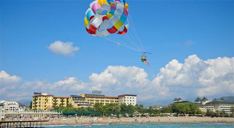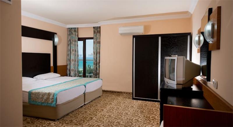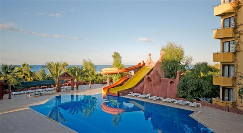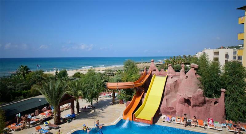 I lokalizuar ne zonen e Konakli ne Alania vetem 1 ore e 30 min larg larg aeroportit te Antalias. Hoteli eshte rinovuar ne vitin 2013 dhe ofron kushte shume te mira qendrimi dhe akomodimi per te rinjte, familjaret dhe femijet e te gjitha moshat. Ne total hoteli ofron 252 dhoma te arredura ne menyre elegante dhe me te gjitha kushtet per te kaluar pushime te paharrueshme. Dhomat jane te ndara ne : 225 dhoma standarte , 25 dhoma familjare ,2 dhoma per personat me aftesi te kufizuara. Ne dispozicionin tuaj jane : 3 pishina te jashtme me permasa (340m2,200m2 dhe 100m2), pishine me rreshqitese me sip.200m2, 2 pishina per femije dhe 1 pishine jakuzzi. Ketu do te gjeni aktivitete te ndryshme si : terrene sportive, sportet e ujit , qender fitnesi dhe spa-je me trajtime te vecanta per trupin dhe lekuren tuaj. Ju do te gjeni shezlongje dhe cadra perrreth pishines dhe ne breg te deti nga ku mund te clodheni me natyren e bukur qe ju rrethon. Lobby bar , beach bar , pool bar - sherben te gjitha llojet e pijeve duke filluar nga ato te imporit dhe vendase , alkoolike dhe joalkoolike , te ngrohta dhe te ftohta si dhe kokteile te ndryshme shumengjyreshe. Baret dhe restorantet- Hoteli operon me sherbin all inclusive dhe sherben gatime dhe pije pergjate gjithe dites ne baret dhe restorantet e vena ne dispozicion. Ketu sherben gatime nga guzhina turke dhe ajo nderkombetare. Restoranti kryesor - hapet nga ora 07.00-21.30 dhe ka nje kapacitet prej 600 personash dhe sherben vaktet kryesore ne bufe te hapur me mundesi perzgjedhje nga guzhina turke dhe ajo nderkombetare sipas shijes dhe deshires tuaj . Snack restorant - ka nje kapacitet prej 200 vendesh dhe sherben gatime te shpejta ne orarin e drekes si pizza , sanduic , spageti etj. Patty tend- ka nje kapacitet prej 20 personash dhe sherben gatime tradicionale turke .