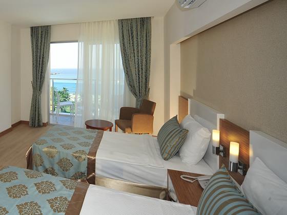 I lokalizuar ne breg te detit vetem 1 ore larg aeroportit te Antalias shtrihet ky hotel i mrekullueshme qe ofron nje cilesi te larte sherbimi dhe akomodimi per te gjithe te ftuarit e saj. Ne dispozicionin tuaj jane 228 dhoma te arreduara ne menyre moderne dhe elegante. Hoteli ja nje siperfaqe prej 10.000m2 dhe ofron ambjente te ndryshme argetimi dhe clodhje sic jane pishina e brendeshme, pishina e jashtme, aktivitetet sportive ne terrene te posacme si dhe sportet e ujit per te gjithe te apasionuarit e sporteve qe duan te ndidhen energjik dhe vital. Animacionet show-t dhe spektaklet nuk do te mungojne pergjate gjithe qendrimit tuaj ne kete hotel. Qendra e fitnesit, saunave, spave , masazheve do te ofrojne programe te posacme profesionale per trupin dhe lekuren tuaj. Hoteli eshte i pershtatshem per te gjtha moshat duke filluar nga te rinjte, familjaret dhe femijet e tyre duke ju vene ne dispozion pishine per femije, kendlojrash, miniclub etj. Baret dhe restorantet- Hoteli operon me sherbin all inclusive dhe sherben gatime dhe pije pergjate gjithe dites ne baret dhe restorantet e vena ne dispozicion. Ketu sherben gatime nga guzhina turke dhe ajo nderkombetare.Restoranti kryesor- hapet nga ora 07.00-21.30 dhe sherben vaktet kryesore ne bufe te hapur me mundesi zgjedhje nga guzhina turke dhe ajo nderkombetare sipas shijes dhe deshires tuaj. Turkish a la carte restorant – hapet nga ora 19.00-21.30 dhe sherben gatime speciale nga guzhina turke. Sea food a la carte restorant – sherben darken me gatime speciale me baze peshku dhe prodhime deti. Lobby bar, beach bar, pool bar – sherben te gjitha llojet e pijeve duke filluar nga ato te imporit dhe vendase, alkoolike dhe joalkoolike, te ngrohta dhe te ftohta si dhe kokteile te ndryshme shumengjyreshe.