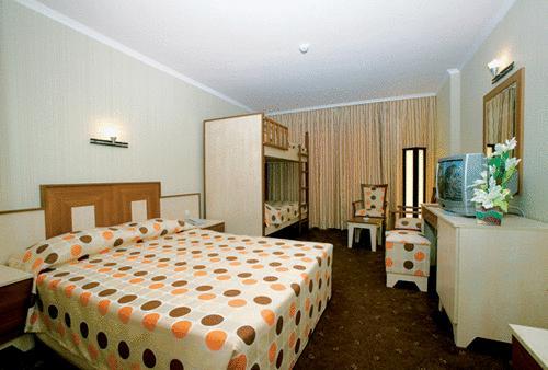Stella Beach Hotel i ndertuar ne vitin 2005 dhe i rinovuar ne vitin 2010 eshte i vendosur direkt në plazh, ky hotel gjithë-përfshirës ofron dhoma moderne me ajër të kondicionuar dhe ballkone private. Hoteli ka pishina brendshme dhe te jashtme, një hamam dhe një palestër si dhe shume aktivitete te tjera. Mysafirët mund të pushojnë duke shijuar rrezet e dielli ose nëse duan të qetësohen, ata mund të bejne një renie freskuese në pishinë duke përdorur një nga 3 rreshqiteset e ujit. Një ekip profesional animatoresh ofron argëtim gjatë gjithë ditës. Fëmijët mund të argëtohen në mini-klub. Akomodimi: Hoteli ka gjithesej 247 dhoma te rehatshme te gjitha te pajisura me banjo / WC, tharëse flokesh/rrobash, SAT-TV me kanal muzike, telefon, mini-bar, kasaforte (me pagesë), ajer te kondicionuar, qilim dhe ballkon. 177 Dhoma standarte, 60 dhoma familjare, 10 suita. Disa prej dhomave kane pamje nga deti mesdhe. Baret dhe Restorantet: Mysafiret mund të shijojne mëngjes, drekë dhe darkë me bufe të hapur ose ne 2 restorantet alla Carte Italian dhe Ottoman mund te provojne shije turke dhe mesdhetare. Të gjitha pijet vendase alkolike dhe jo alkolike sherbehen ndermjet ores 10.00 dhe 24.00. Stella Beach është vetëm 25 km nga Side dhe Alanya është 30 km larg.