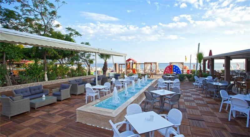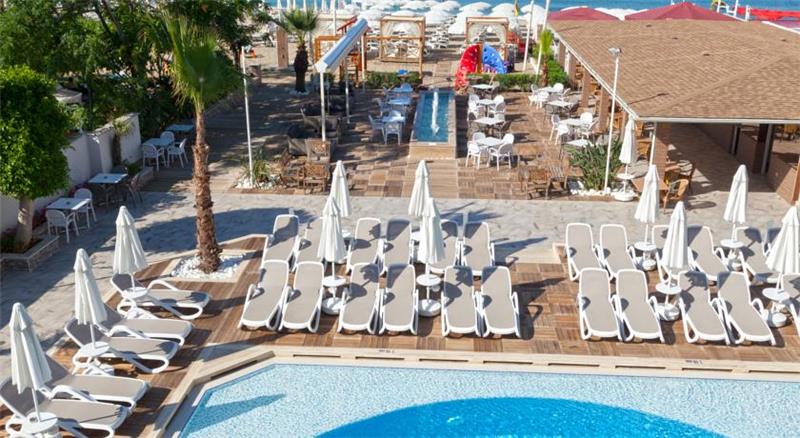 I ndertuar ne vitin 1999 dhe eshte rinovuar në vitin 2011, ndodhet 1 ore larg nga Aeroporti i Antalyas dhe shtrihet ne Plazhet e famshme të Kleopatres. Hoteli disponon 71 Dhoma në total. Dhomat janë te arreduara ne menyre elegante dhe ofrojne kushte te mira dhe te rehatshme pergjate gjithe qendrimit tuaj ne kete hotel. Ketu do te gjeni mundesi te ndryshme argetimi dhe clodhje sic jane : pishine te jashtme, pishine per femije , rreshqitese , kendlojrash per femije, terrene sportive ne breg te deti dhe ne fusha te posacme profesionale , sportet e ujit , qender fitnesi dhe spa-je me trajtime te vecanta per trupin dhe lekuren tuaj . Hoteli eshte i pershtashem per te gjitha moshat dhe ofron pushime clodhese dhe argetuese larg nga monotonia dhe zhurma e perditeshme. Baret dhe restorantet - Hoteli operon me sherbin all inclusive dhe sherben gatime dhe pije pergjate gjithe dites ne baret dhe restorantet e vena ne dispozicion. Ketu sherben gatime nga guzhina turke dhe ajo nderkombetare. Restoranti kryesor – ofron ambjente te brendeshme dhe te jashtme dhe ka nje kapacitet prej 400 personat duke ju ofruar vaktet kryesore dhe te ndermjetme ne bufe te hapur me mundesi perzgjedhjesh ne gatime sipas shijes dhe preferencave tuaja. Beach a la carte restorant – ka nje kapacitet prej 100 personash dhe ofron darken me baze peshku dhe prodhime deti. Big horn restorant – ka nje kapacitet prej 100 personash dhe ofrojne darken me gatimet me te mira nga guzhina turke dhe ajo nderkombetare. Pasticeri bar – ka nje kapacitet prej 50 personash dhe ofron caj, kafe dhe emebelsira pergjate gjithe dites. Lobby bar , restorant bar,pool bar , beach bar - sherben te gjitha llojet e pijeve duke filluar nga ato te imporit dhe vendase , alkoolike dhe joalkoolike , te ngrohta dhe te ftohta si dhe kokteile te ndryshme shumengjyreshe.
